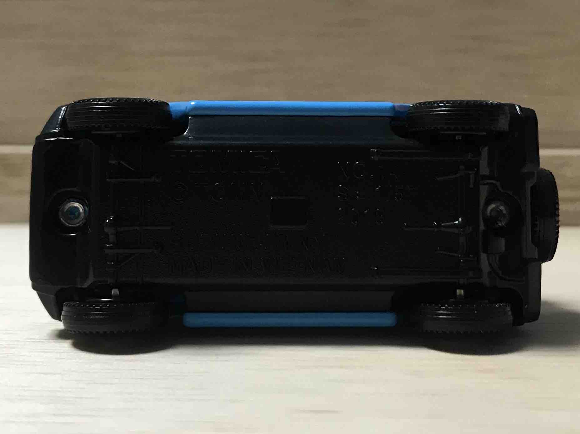 白のラインがよく見ると、後ろのほうがブロック状になっていて、後ろになればなるほど、小さくなっていっていますね。TOMICA EVENT MODELの文字も少しミリタリーテイスト。