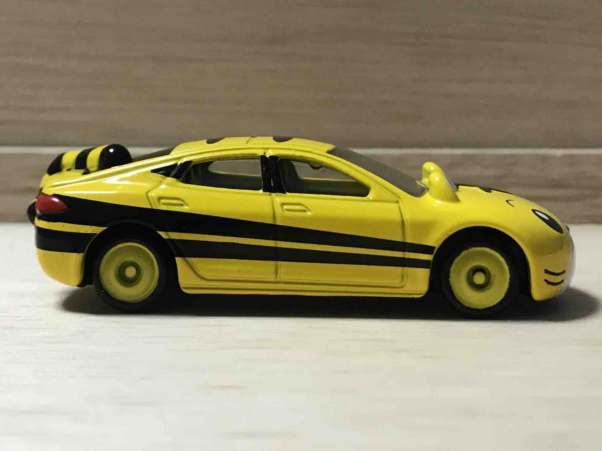 優しいしまじろうのお顔を綺麗に再現。実車は残酷なお話かもしれませんが、お顔のパネルを外すことができます。外すと、テスラ・モデルSのしまじろうカラーが出てきます… 夢のコラボレーションであるドリームトミカに夢を壊すような発言でごめんなさい。でも、そうしないと公道走行ができないのです。(灯火類の関係上) しまじろうカーは、イベント外だと公道での走行中の目撃情報もあったりします。