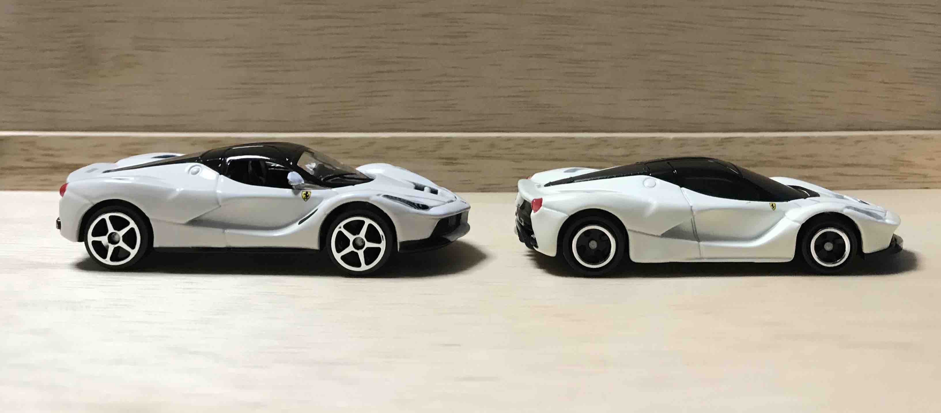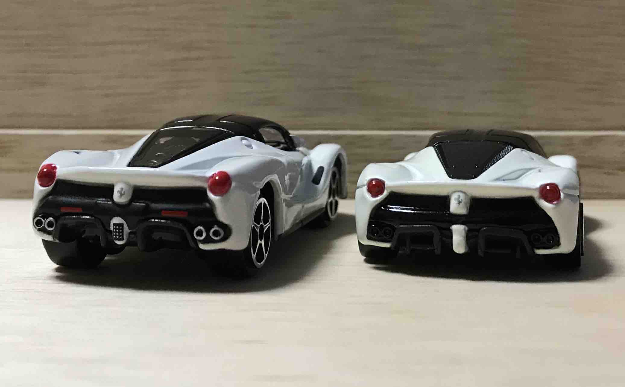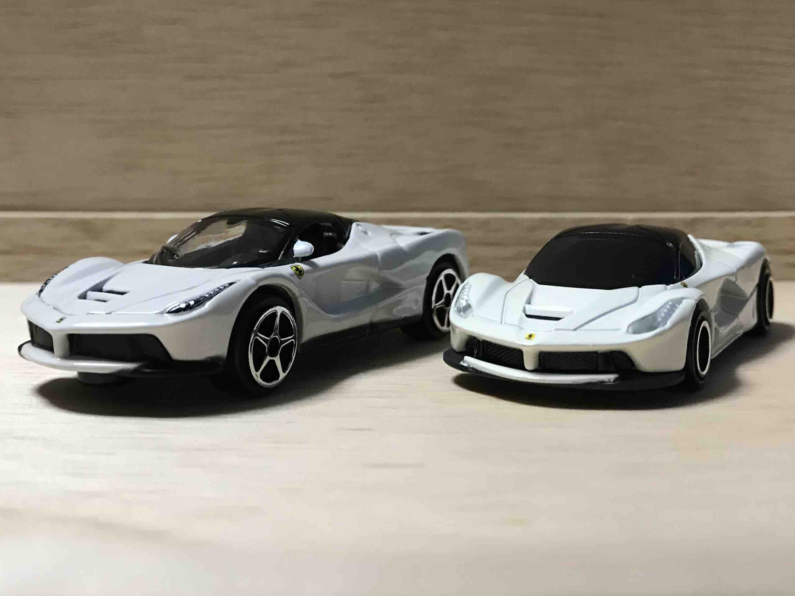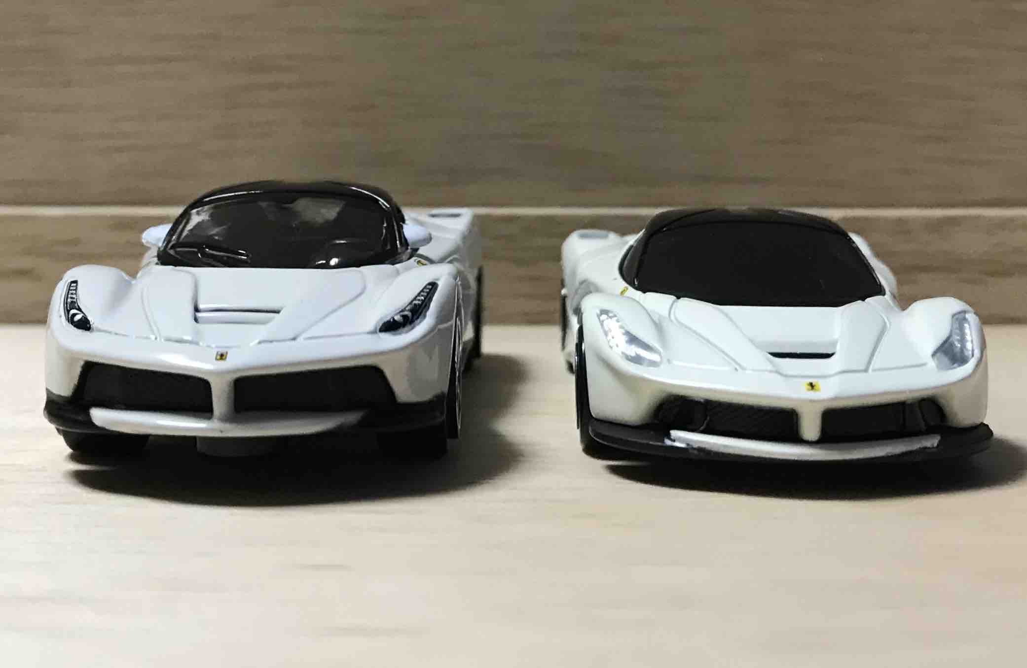 トミカイベントモデルにも同じく、白のラフェラーリがあります。なので、並べてみました。