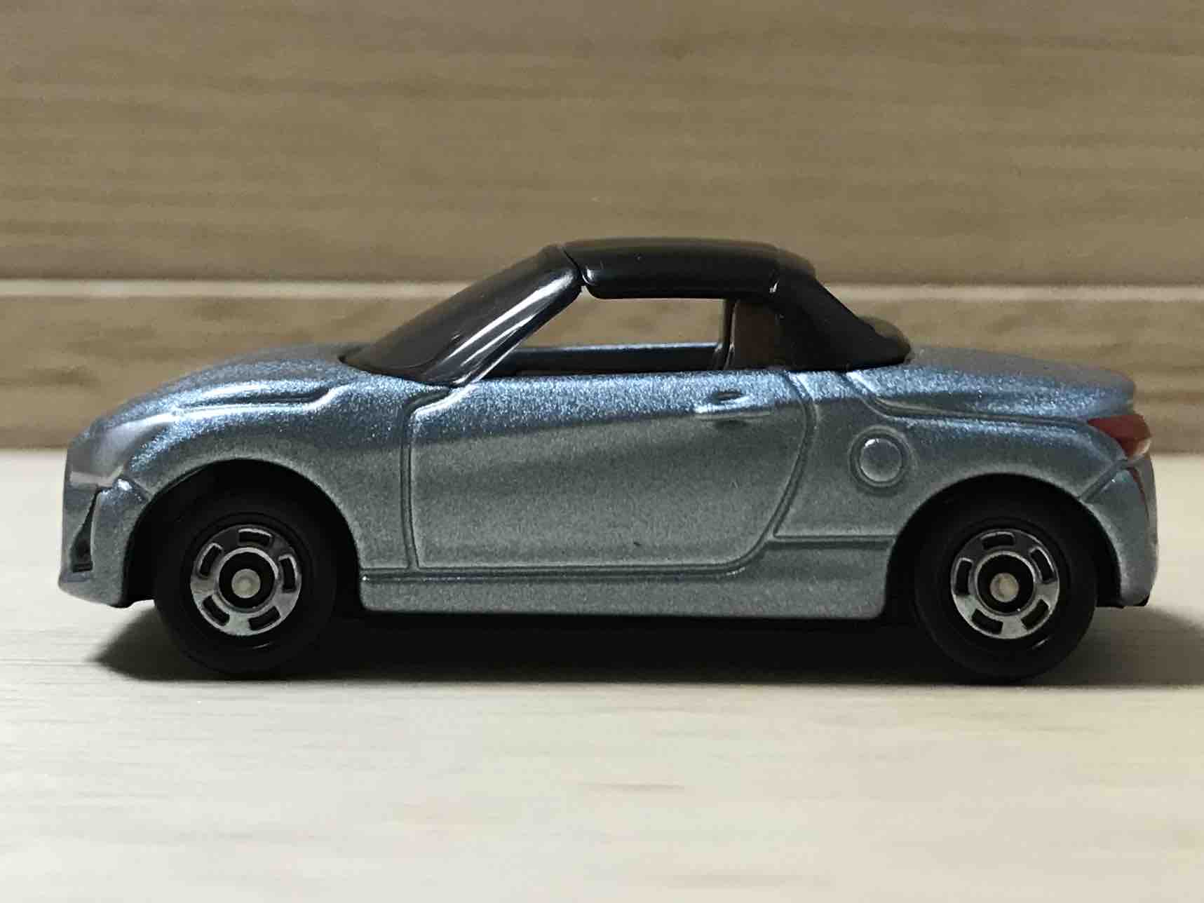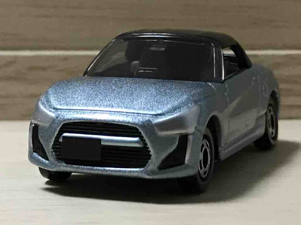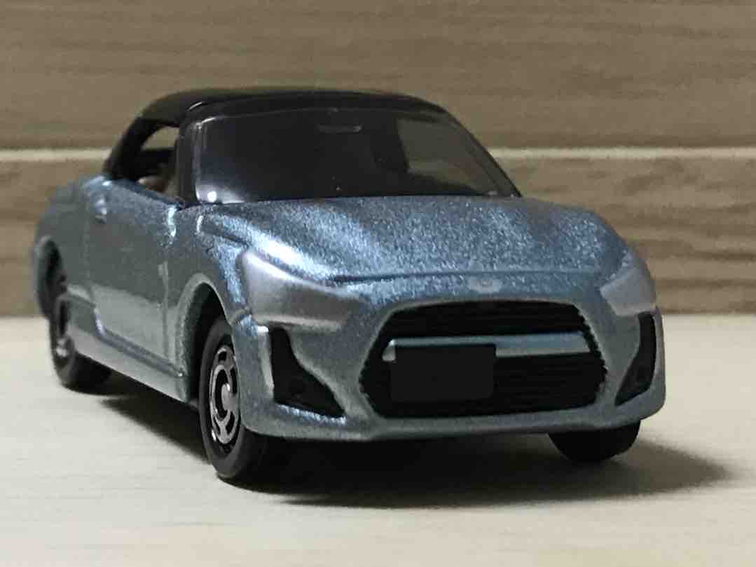 色は青系のシルバー。これはコペンのイメージカラーでもあります。このコペンは、トヨタ自動車へもOEM供給されていて、トヨタ・コペン GR SPORT として発売されています。GR SPORTでの展開のためにOEMされたのです。ダイハツブランドでも、初のGRブランド車となりダイハツ・コペン GR SPORTとして販売されているので、どちらかのトミカ化に期待していたりします。