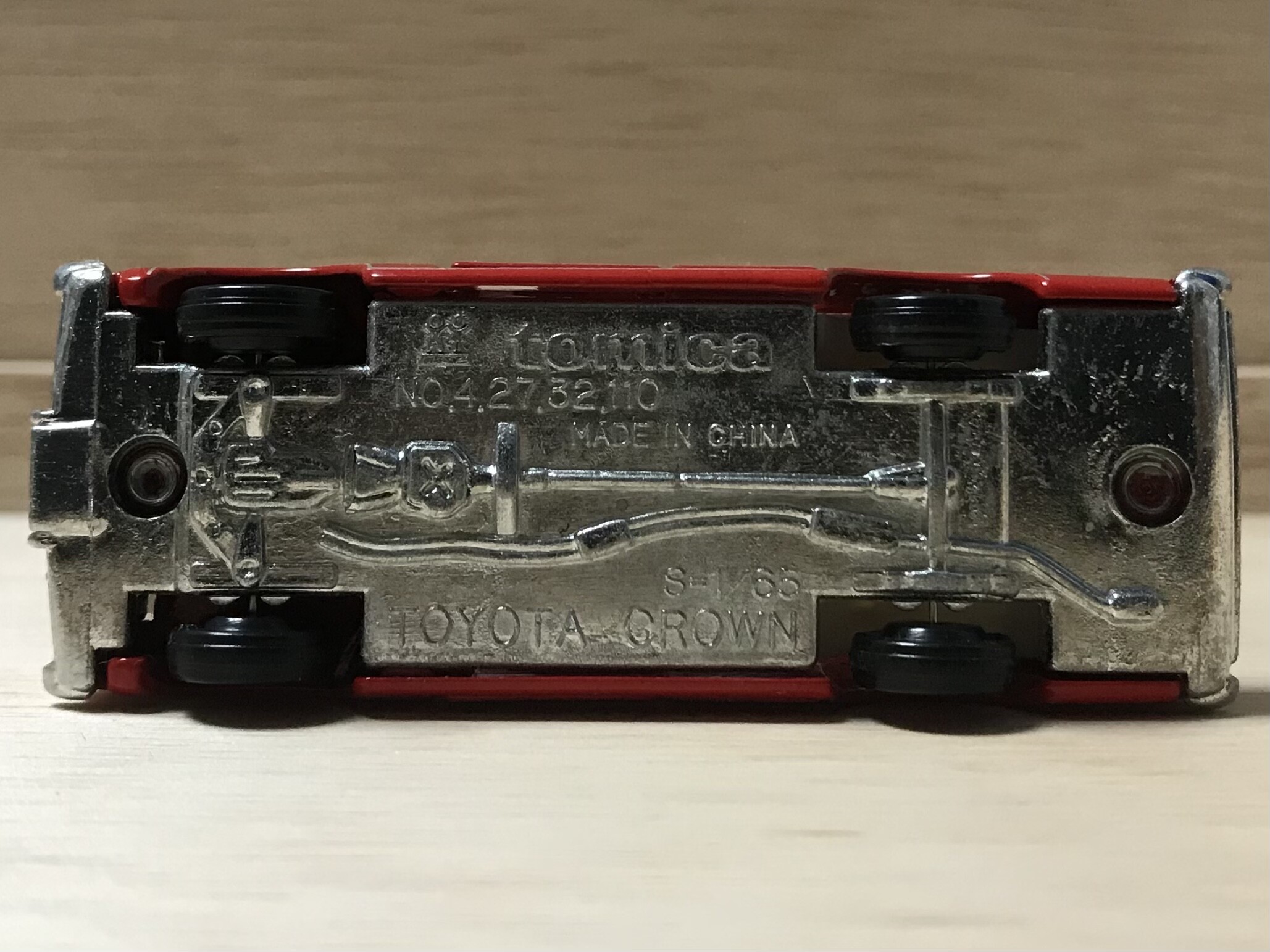 シャーシは昔のトミカらしく亜鉛合金。ナンバリングはバリエーションまでしっかりと刻まれています。一番最初はNo.27 ファイアチーフカーとして登場しました。そう、消防指揮車として登場したのです。クラウンというと高級車なイメージがあるので意外ですよね。