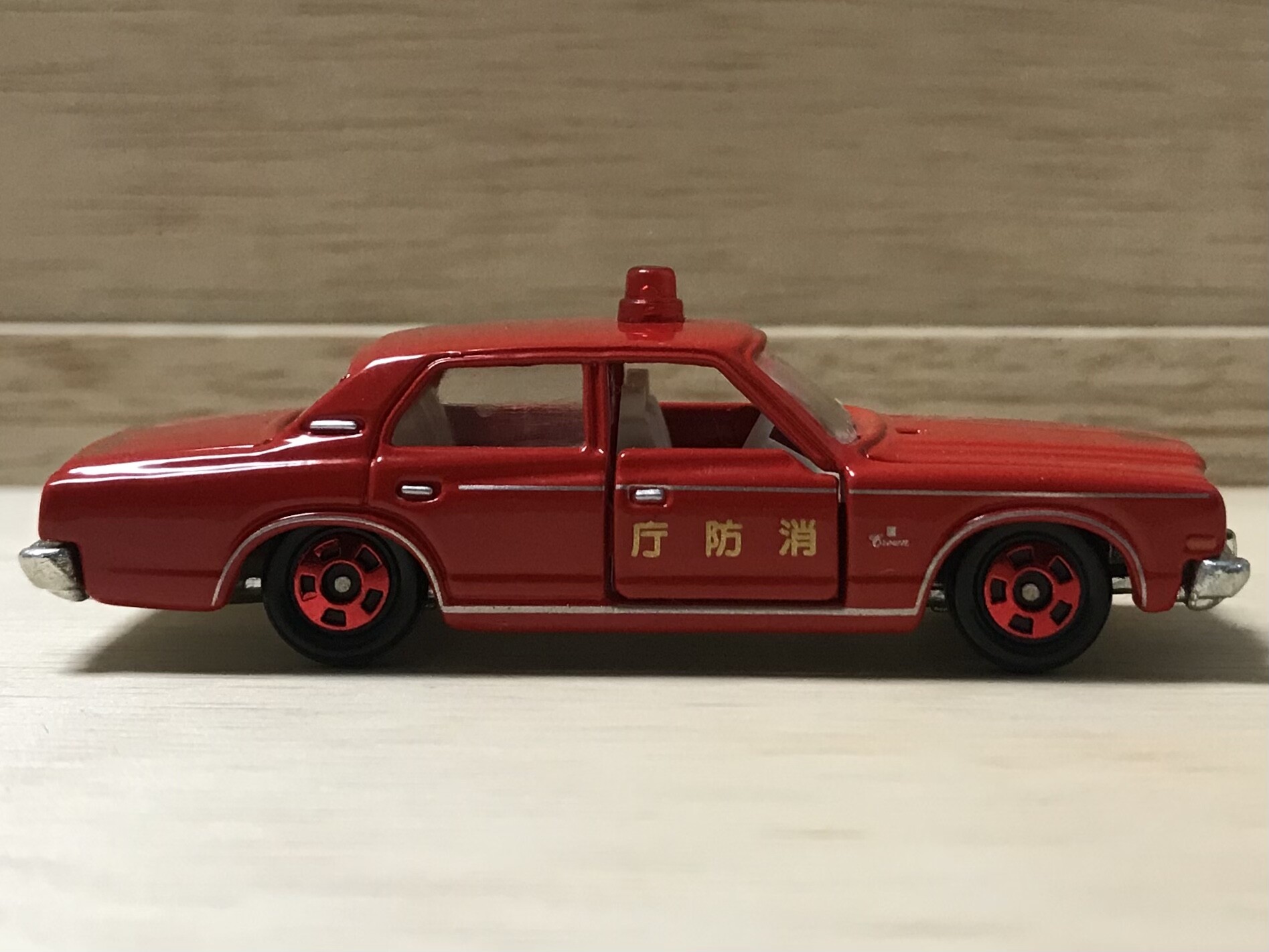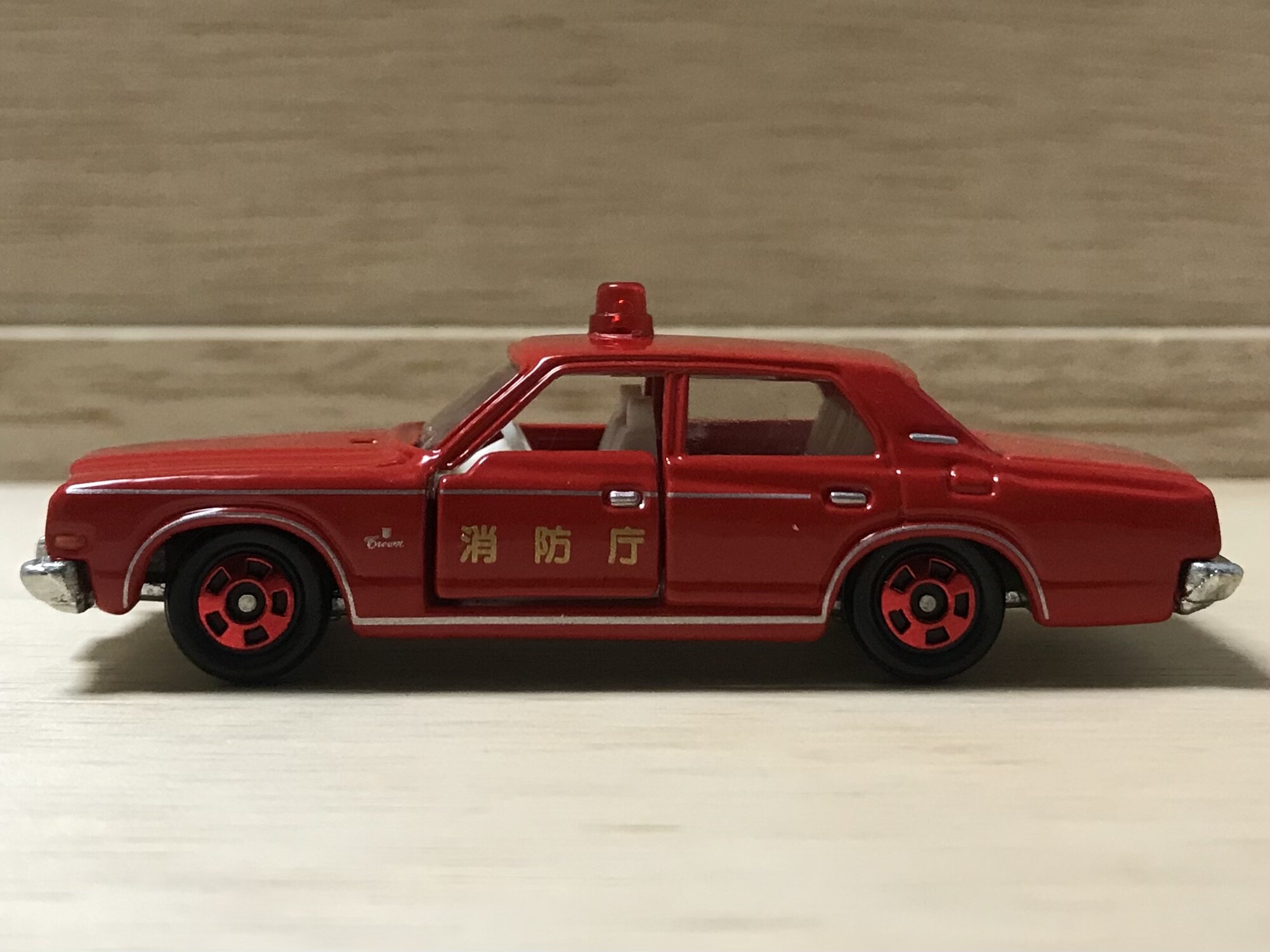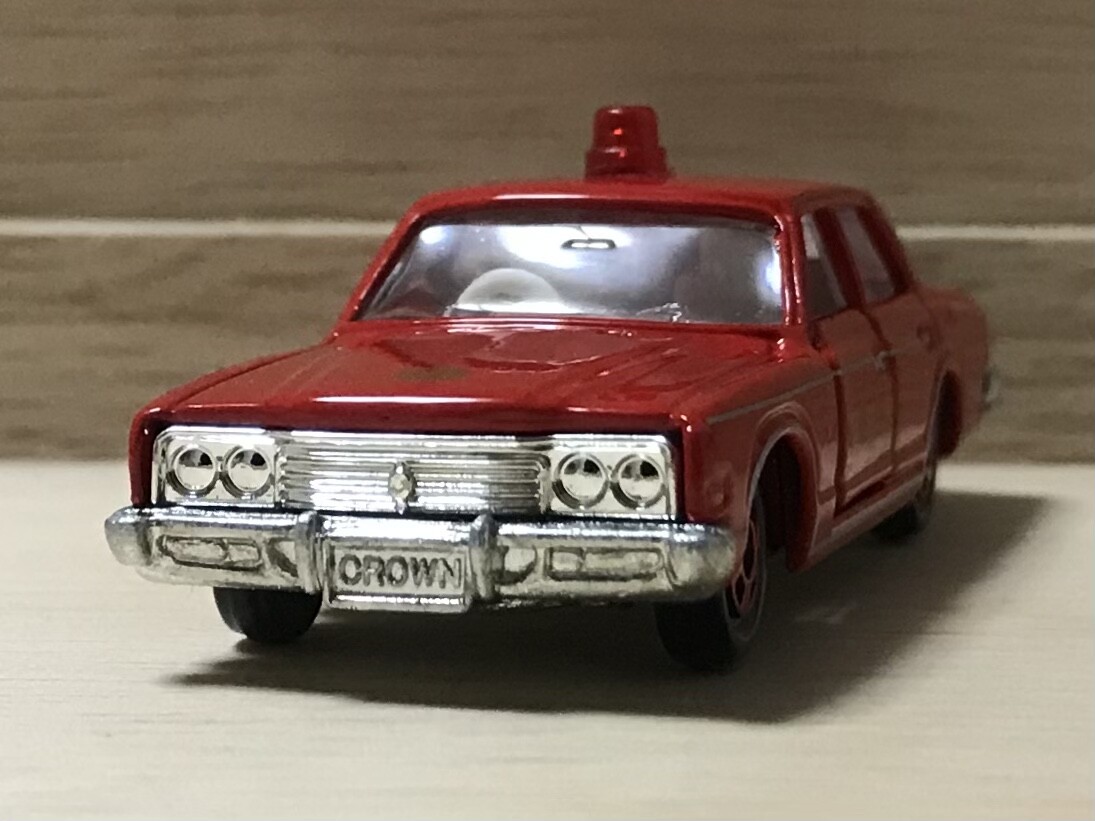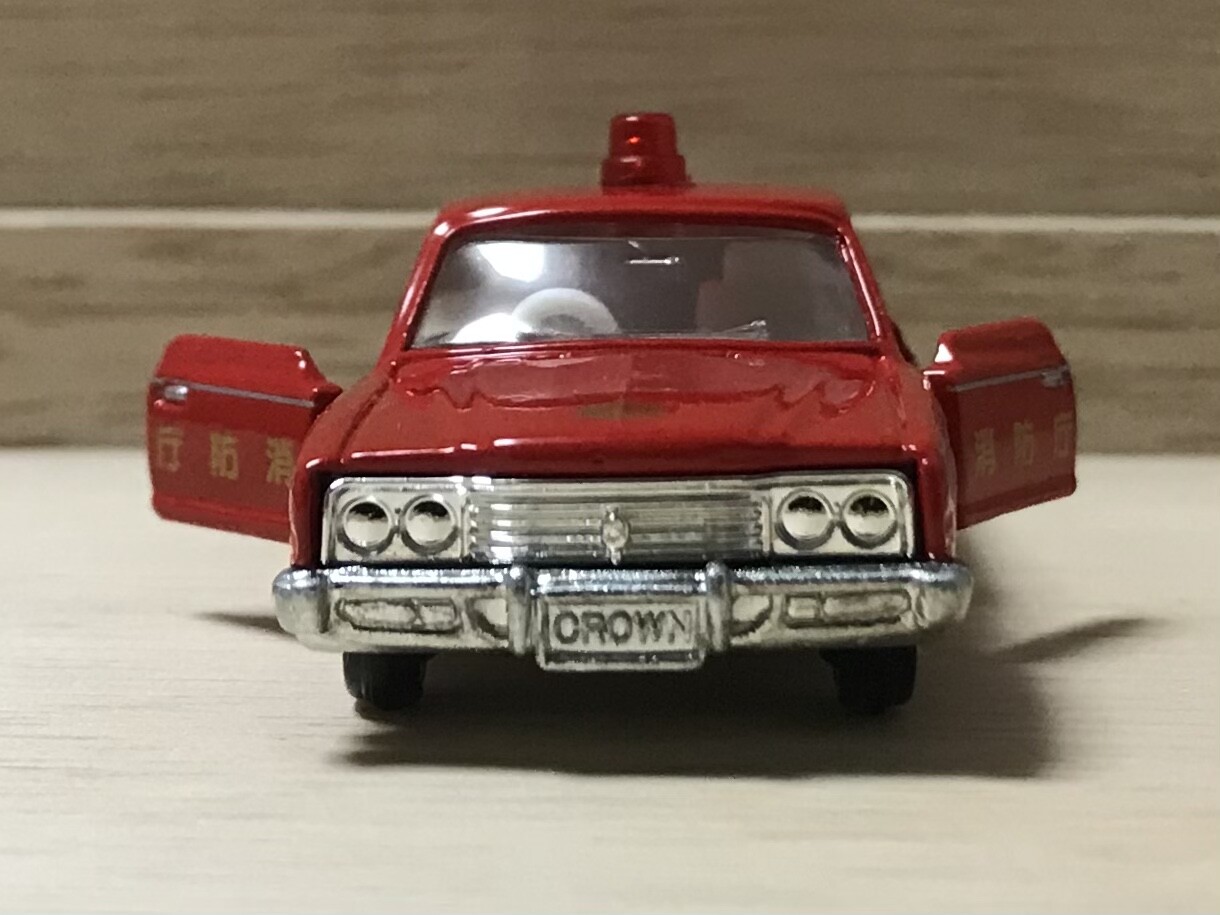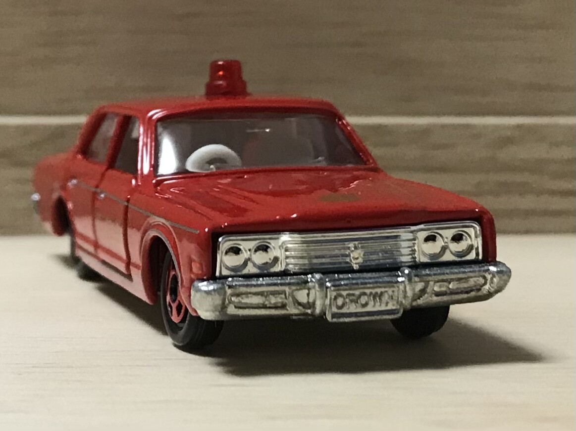 初登場から31年後、トミカ博の入場記念品に抜擢されるとは思いもしなかったでしょうね。クラウンの消防車も悪くはありません。赤灯が真ん中に1つなのも中々。