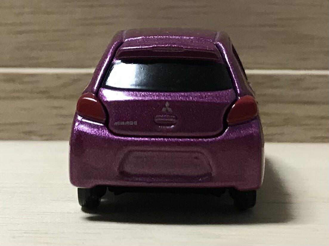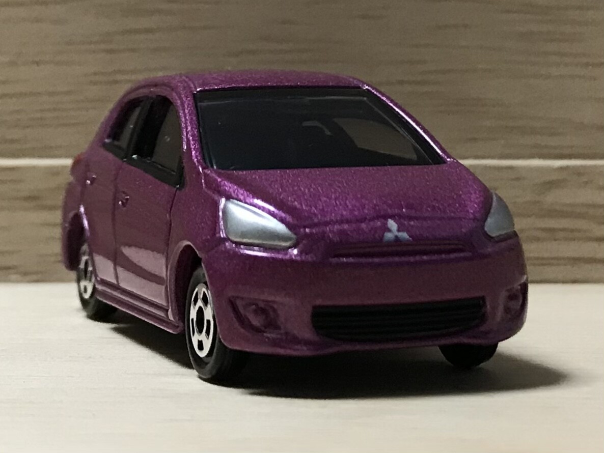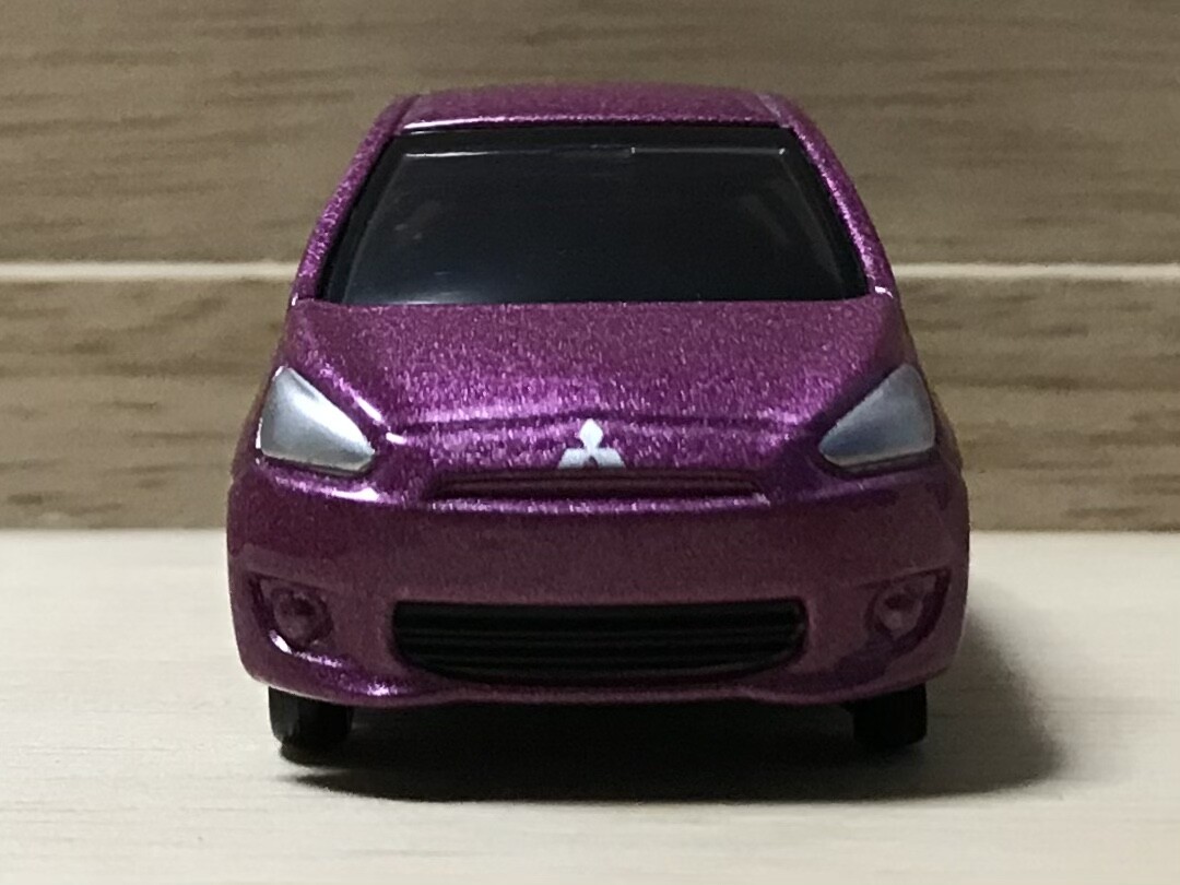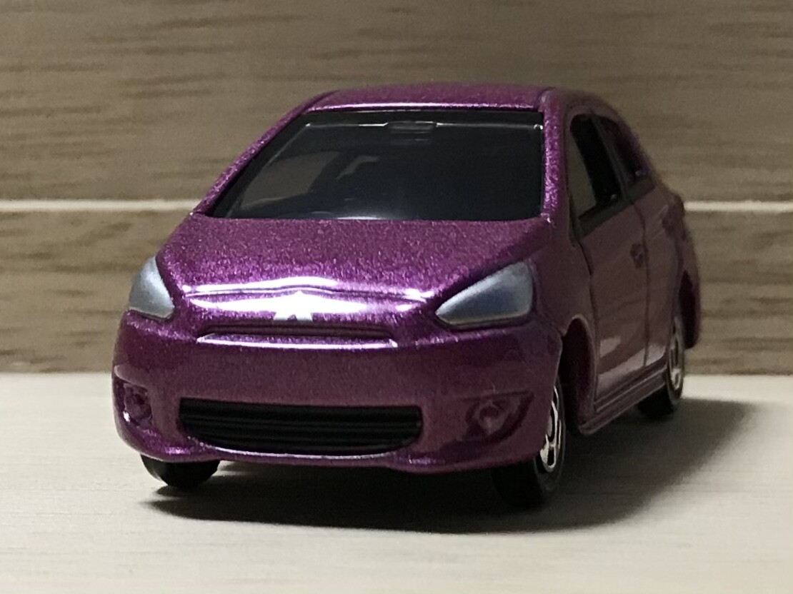 ミラージュは三菱の世界戦略コンパクトカーです。ボディーカラーはピンクのようなパープルのような可愛らしいカラー。三菱のスリーダイヤエンブレムが少し大きな気もしますが、悪くはありません。