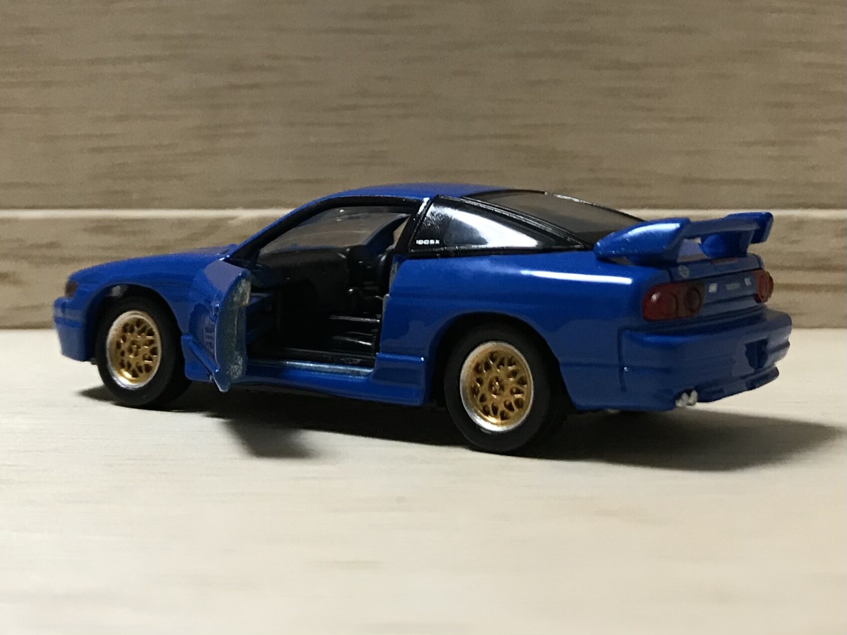 社外ホイールを履いて、さらには窓枠に180SXのエンブレム。180SXは一度もトミカ化されたことがない車種なので、180SXのエンブレムがあるだけでポイントが高いです。
