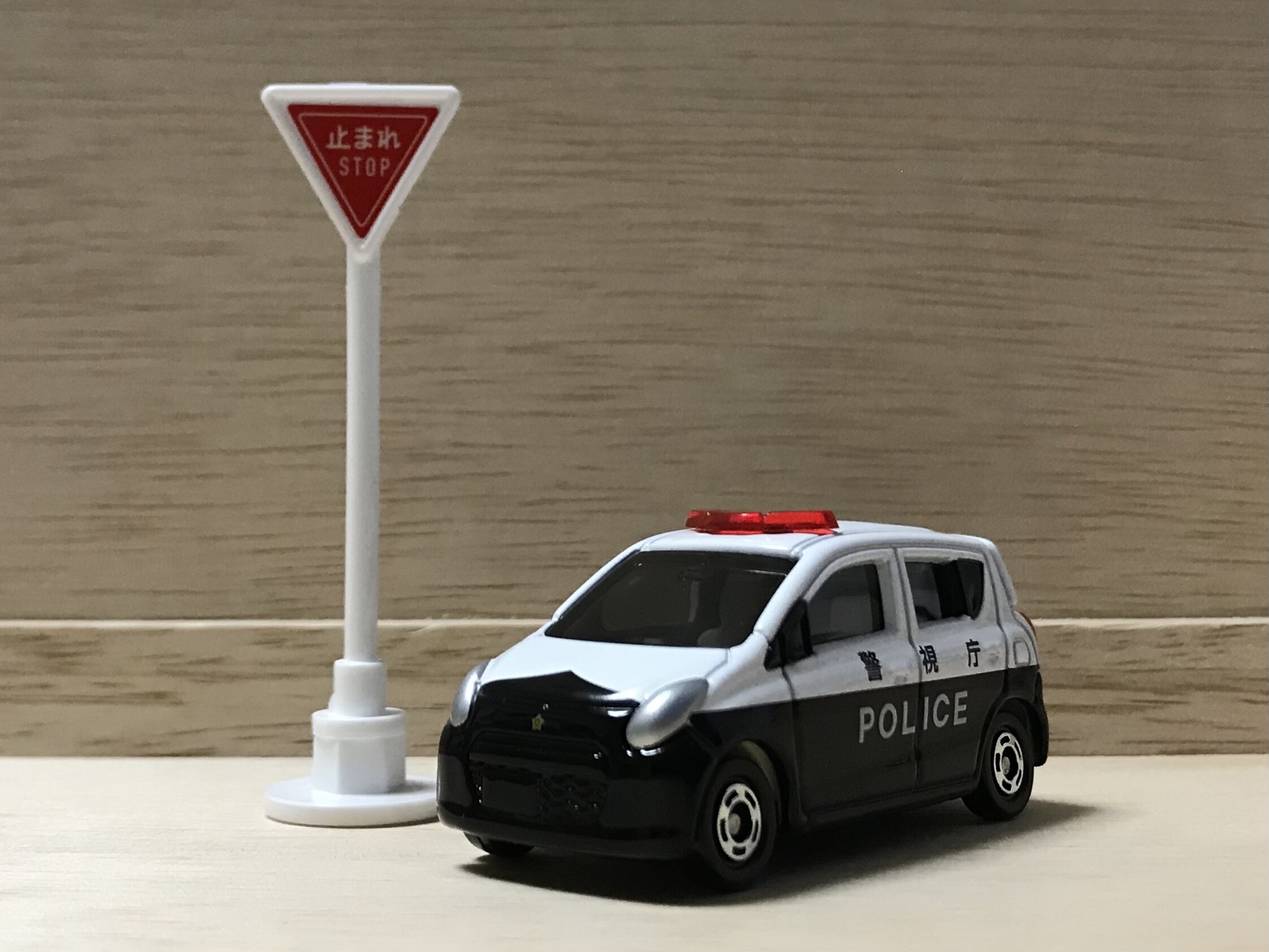 あれ?どこかで見覚えが… アルト…パトロールカー… あ、2014年のトミカ警察のシリーズ展開と同時に発売されたNo.48 スズキアルト パトロールカー !! ではなく、2019年10月発売のトミカ標識セット第1弾にも全く同じものがありました。再登板です。