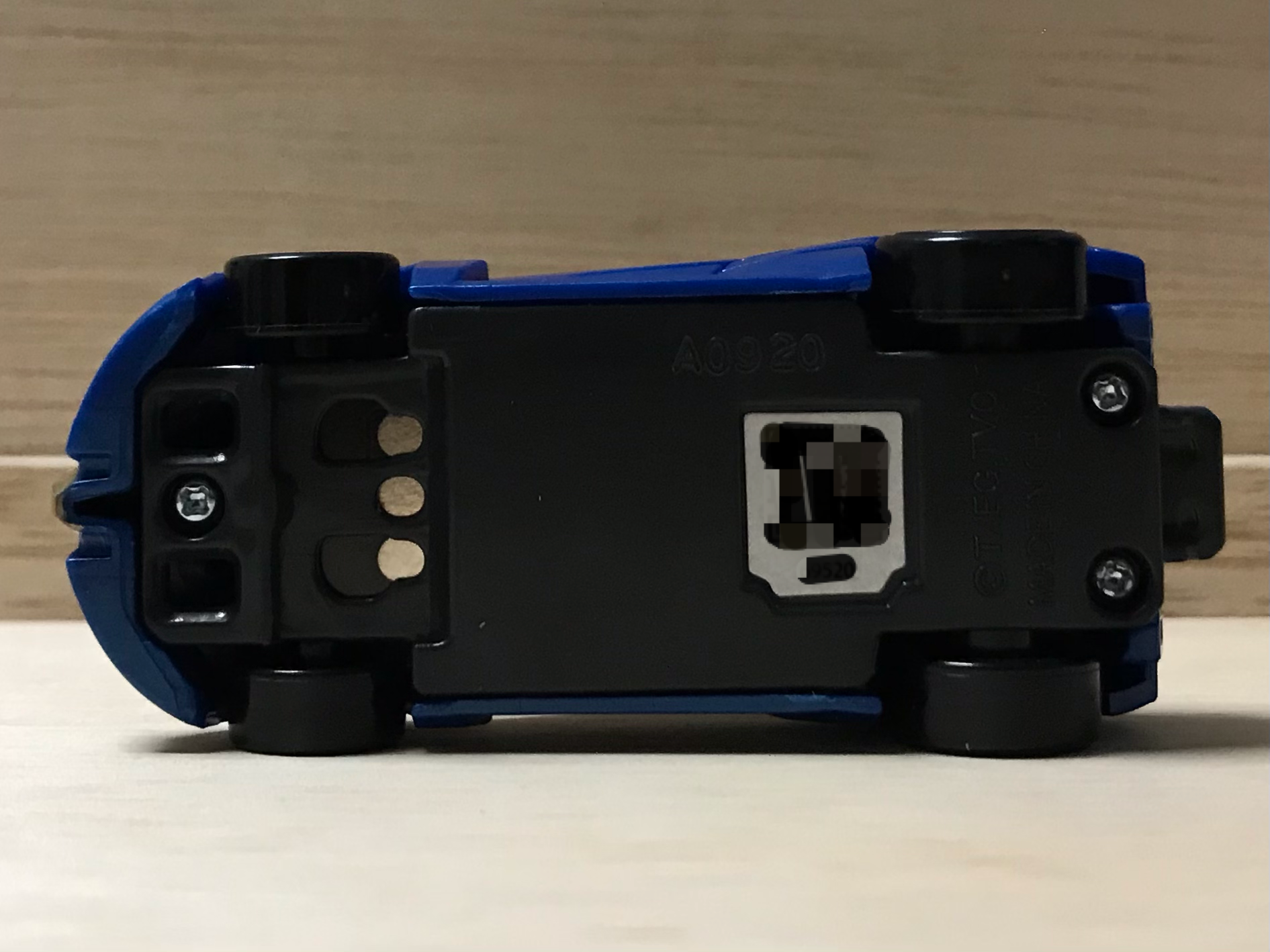 チラ見できちゃったと思うのでシャーシから。アースグランナーのおもちゃと連動するサウンドアクション用のQRコードがあります。昔のαシステムのようなものかと思われます。αシステムは、2000年代前半にマグナムレスキューシリーズやトーマストミカシリーズなどで展開されていた、音声サウンドシステム。