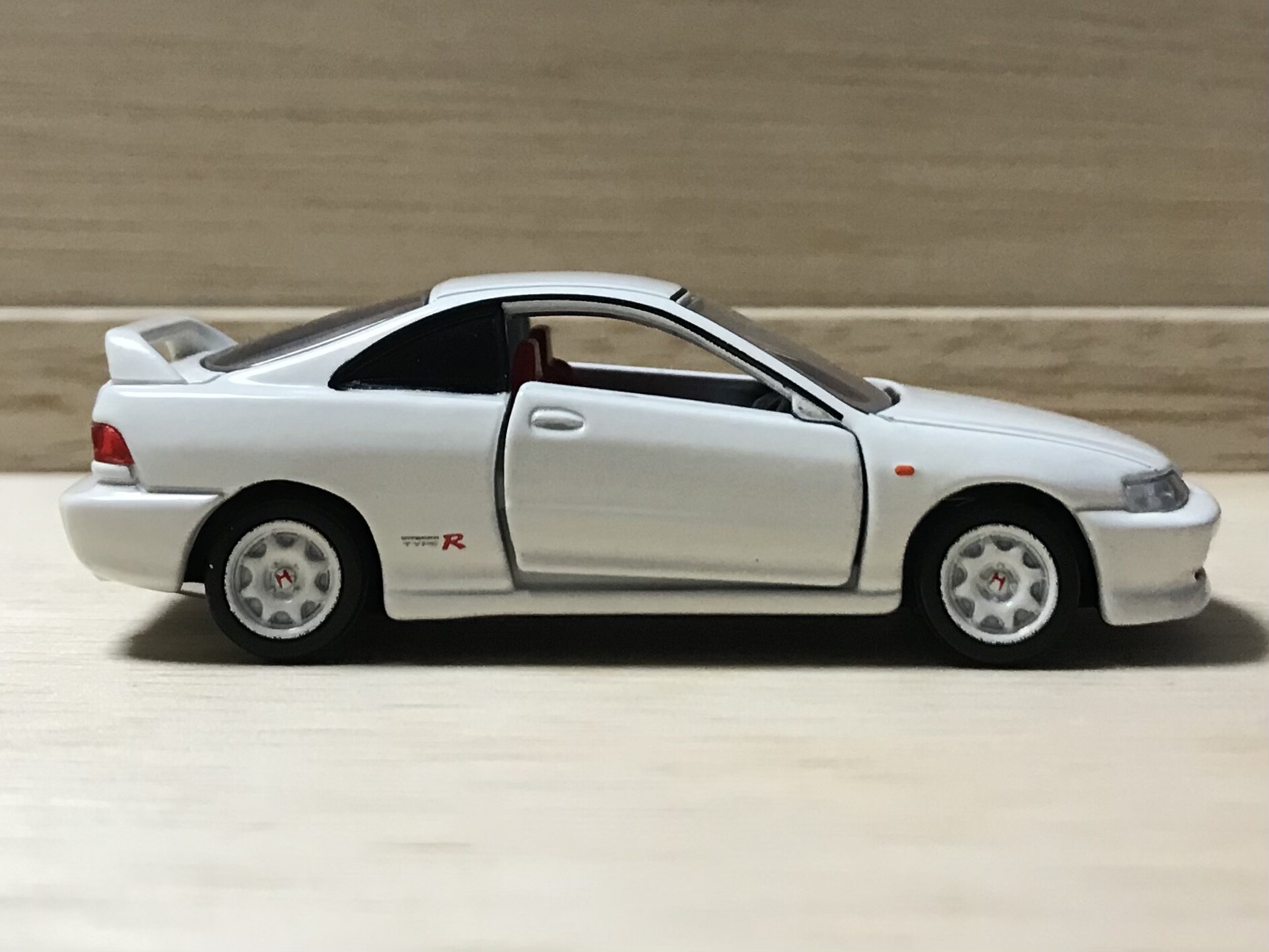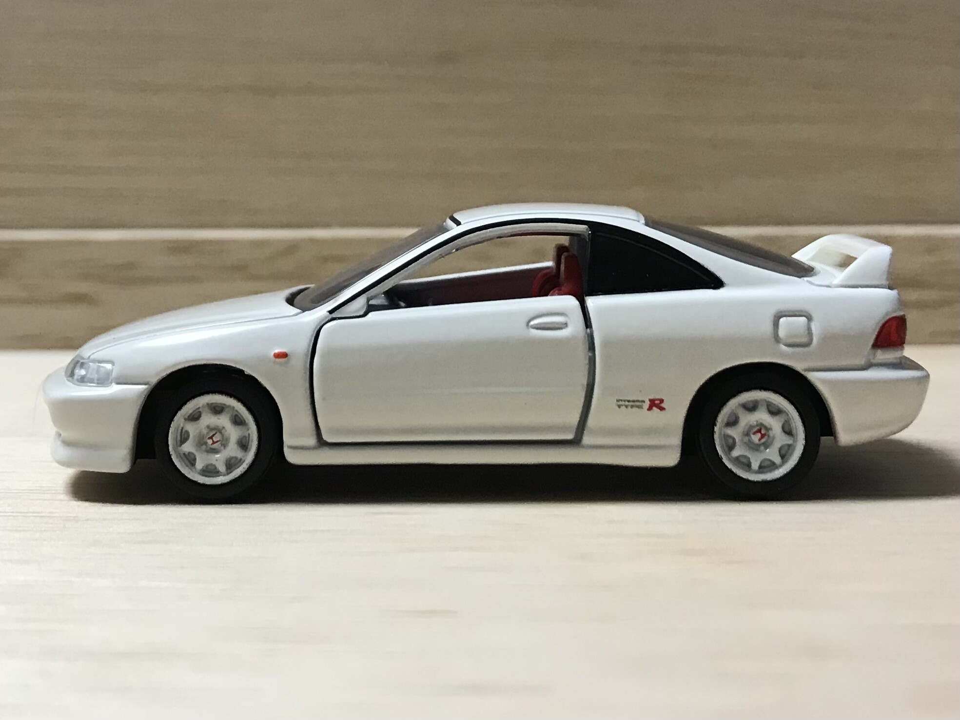 当時から今に至るまで根強い人気をもつ3代目インテグラの高性能仕様「タイプR」。意外にもこれがトミカ初登場。当時は何故か製品化されませんでした。