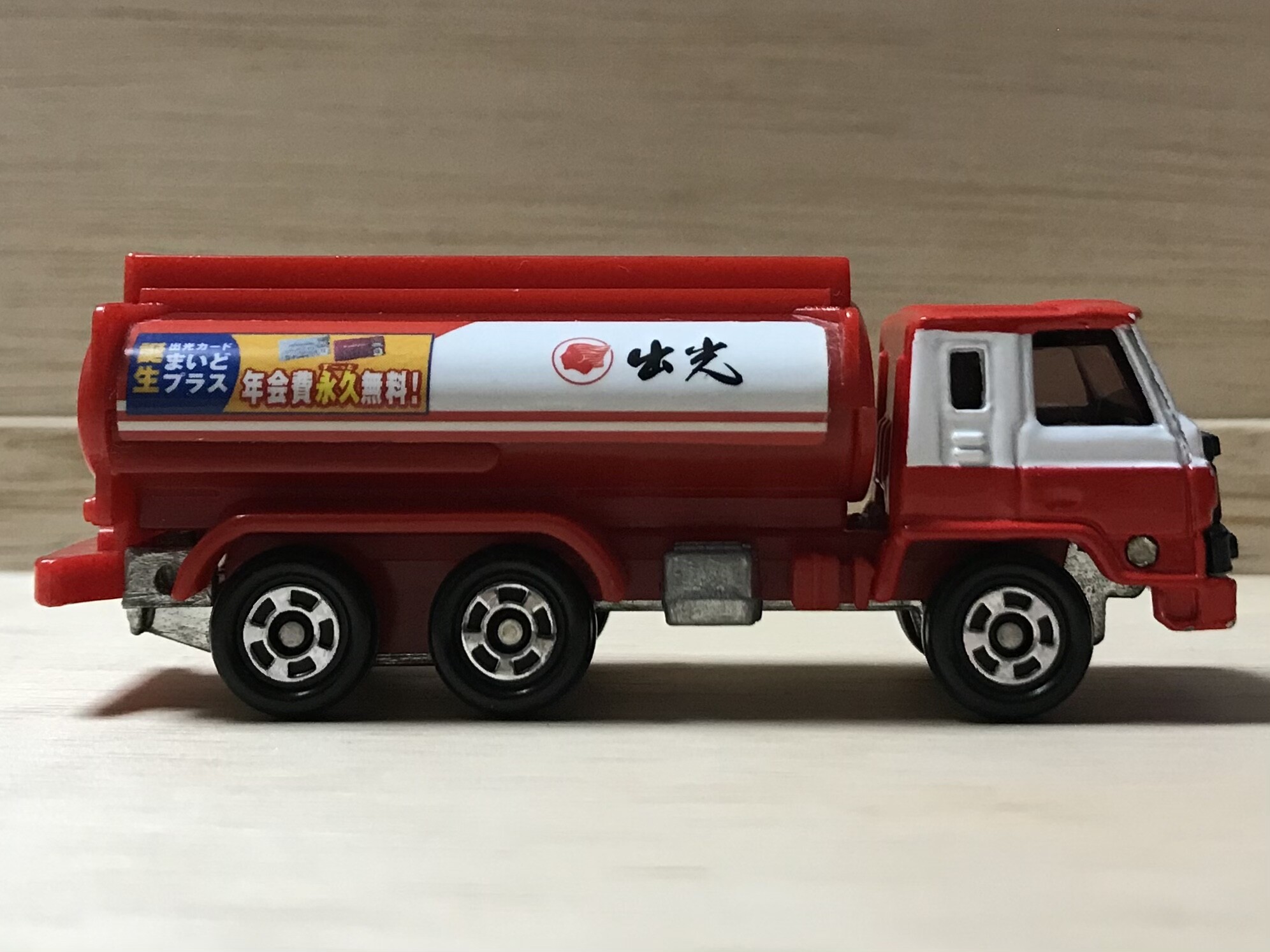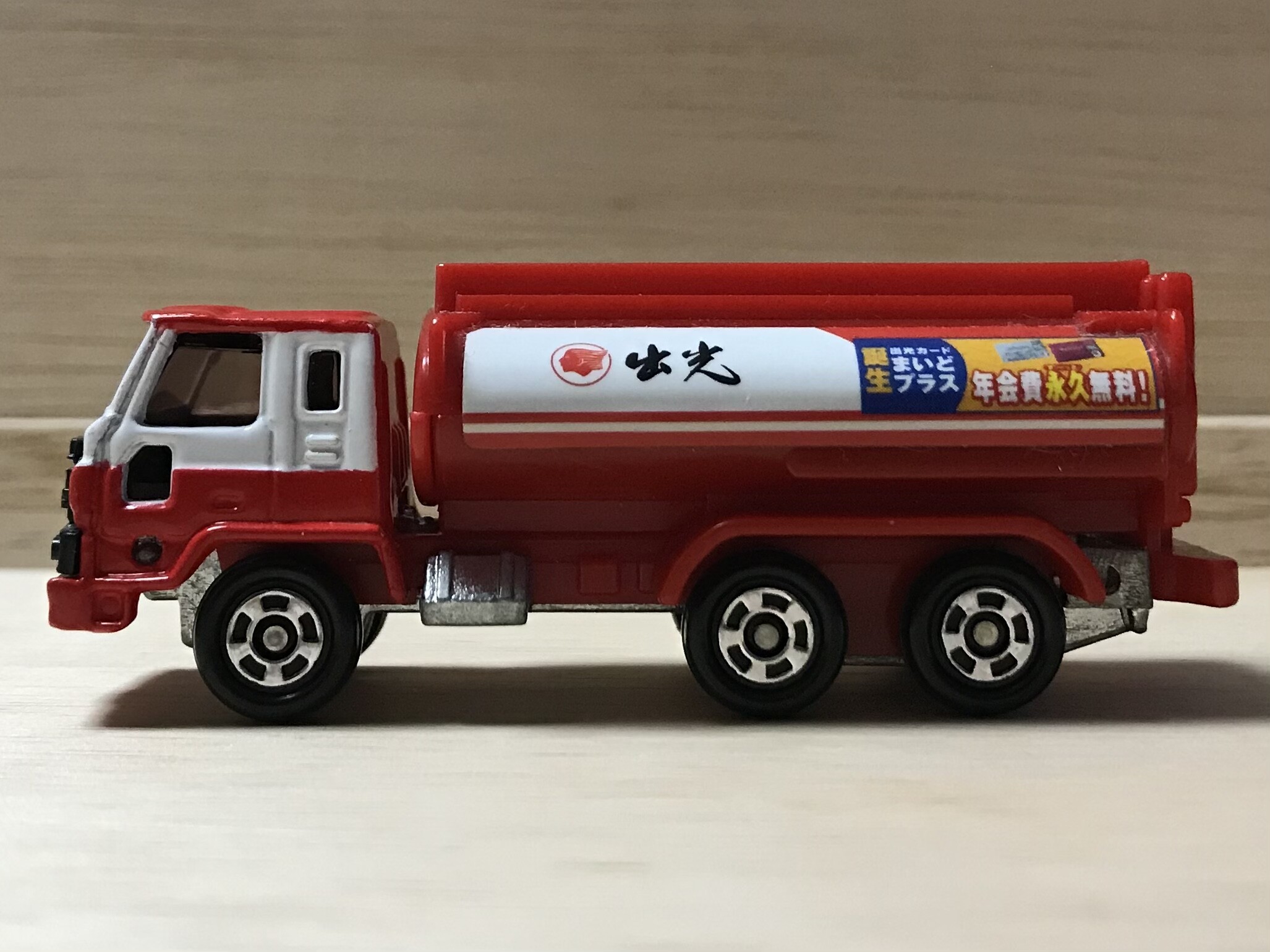出光興産のクレジットカード「出光カードまいどプラス」の誕生を記念して配布されたトミカ。ベースは日産ディーゼル・レゾナのタンクローリー。