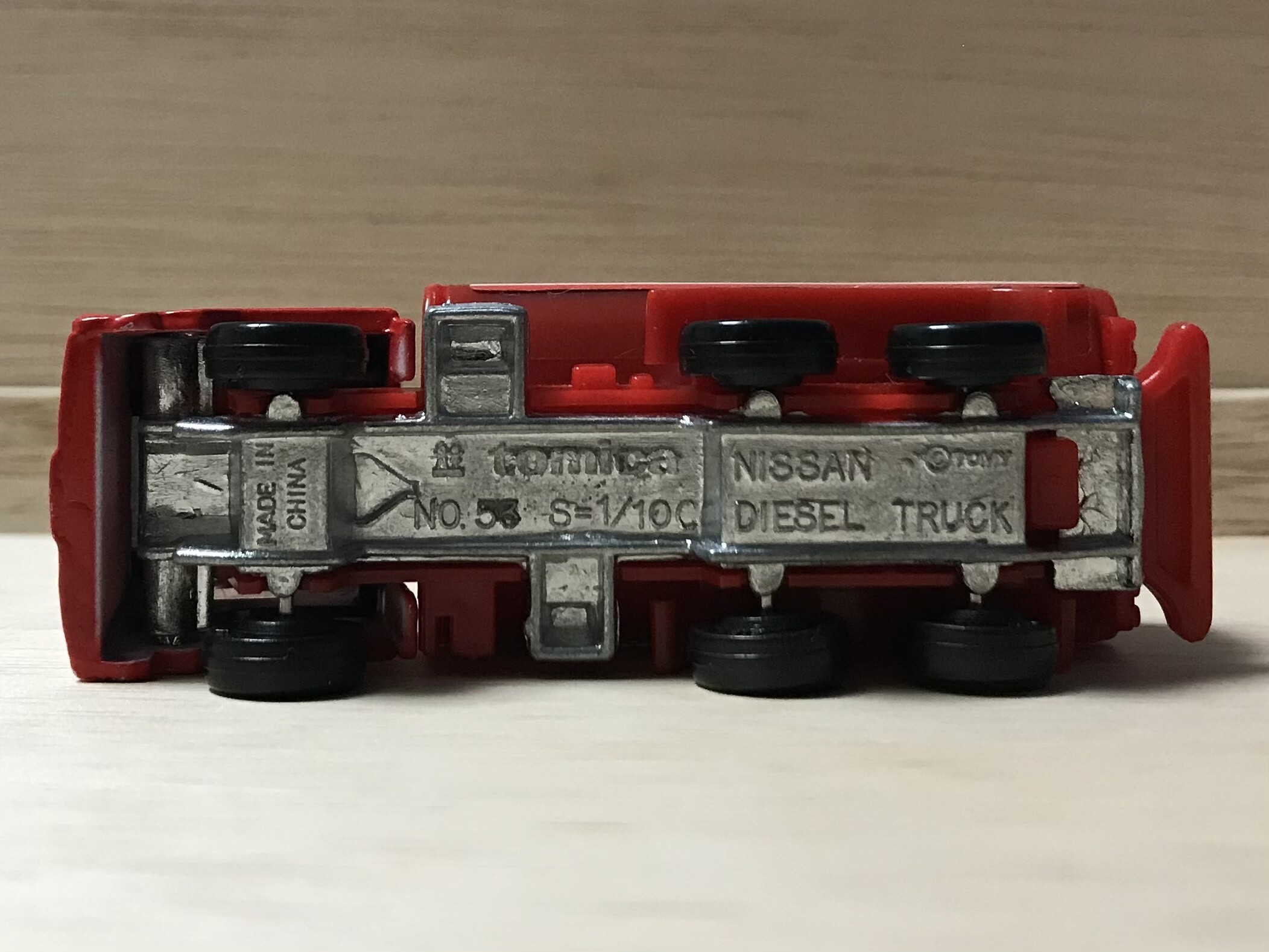 キャブが下がるアクション付き。昔のトラックのトミカに多かったアクションです。
