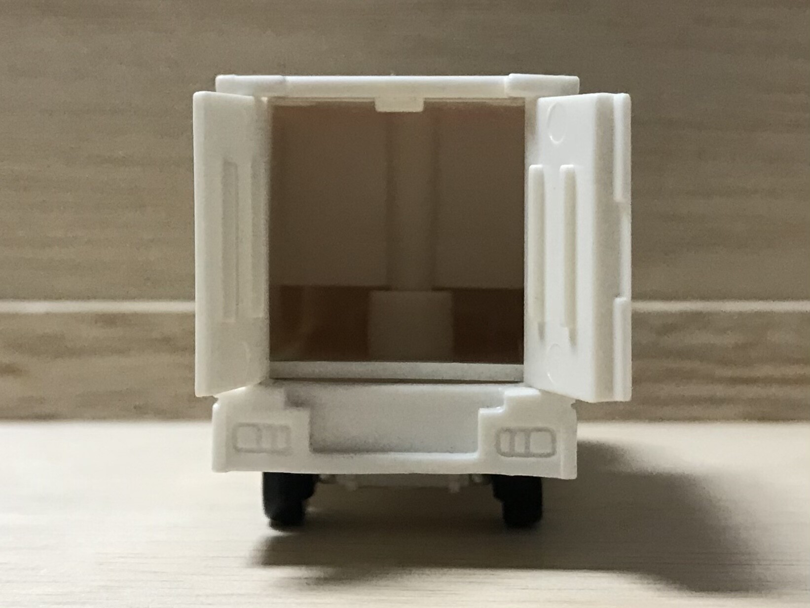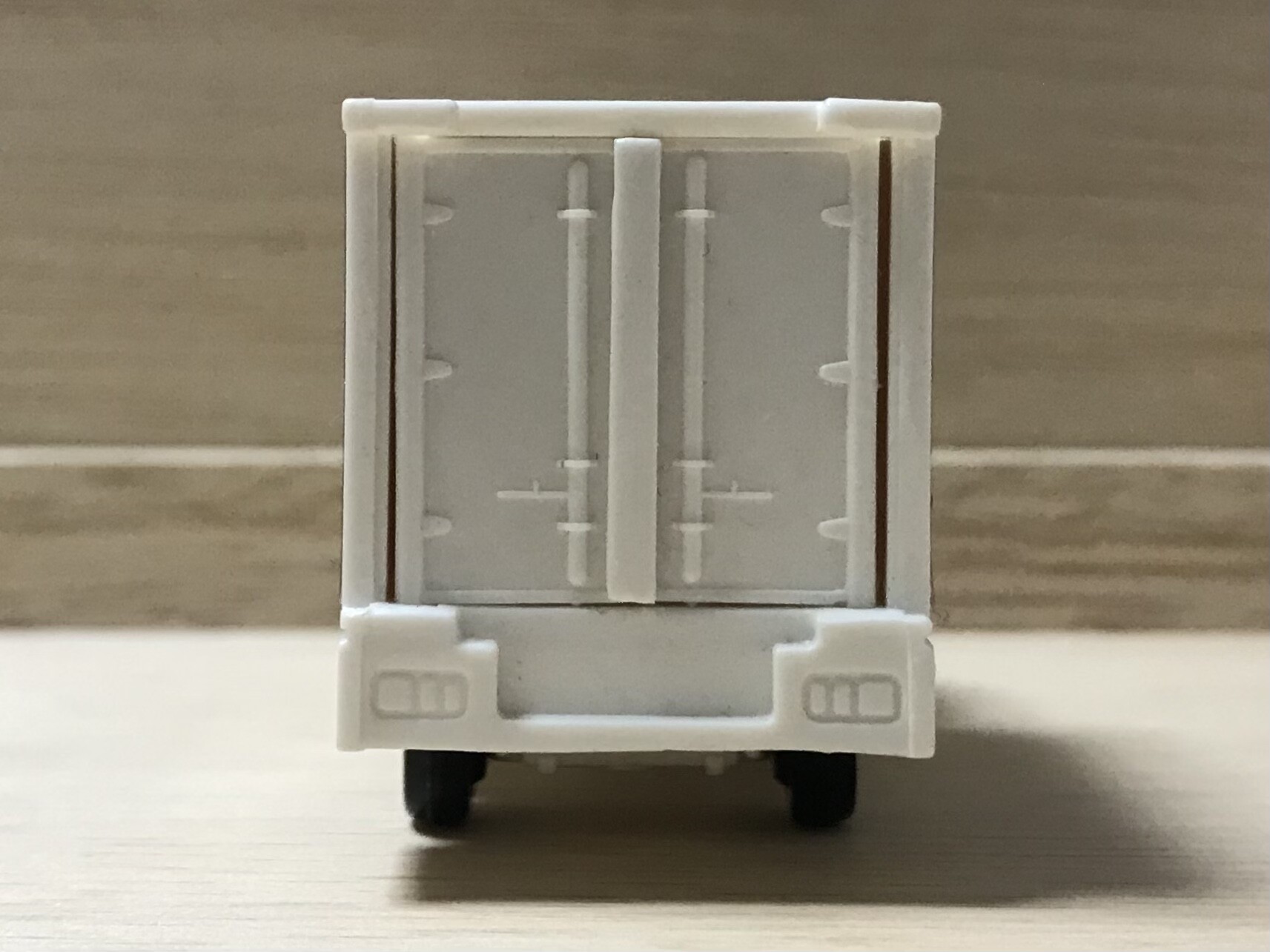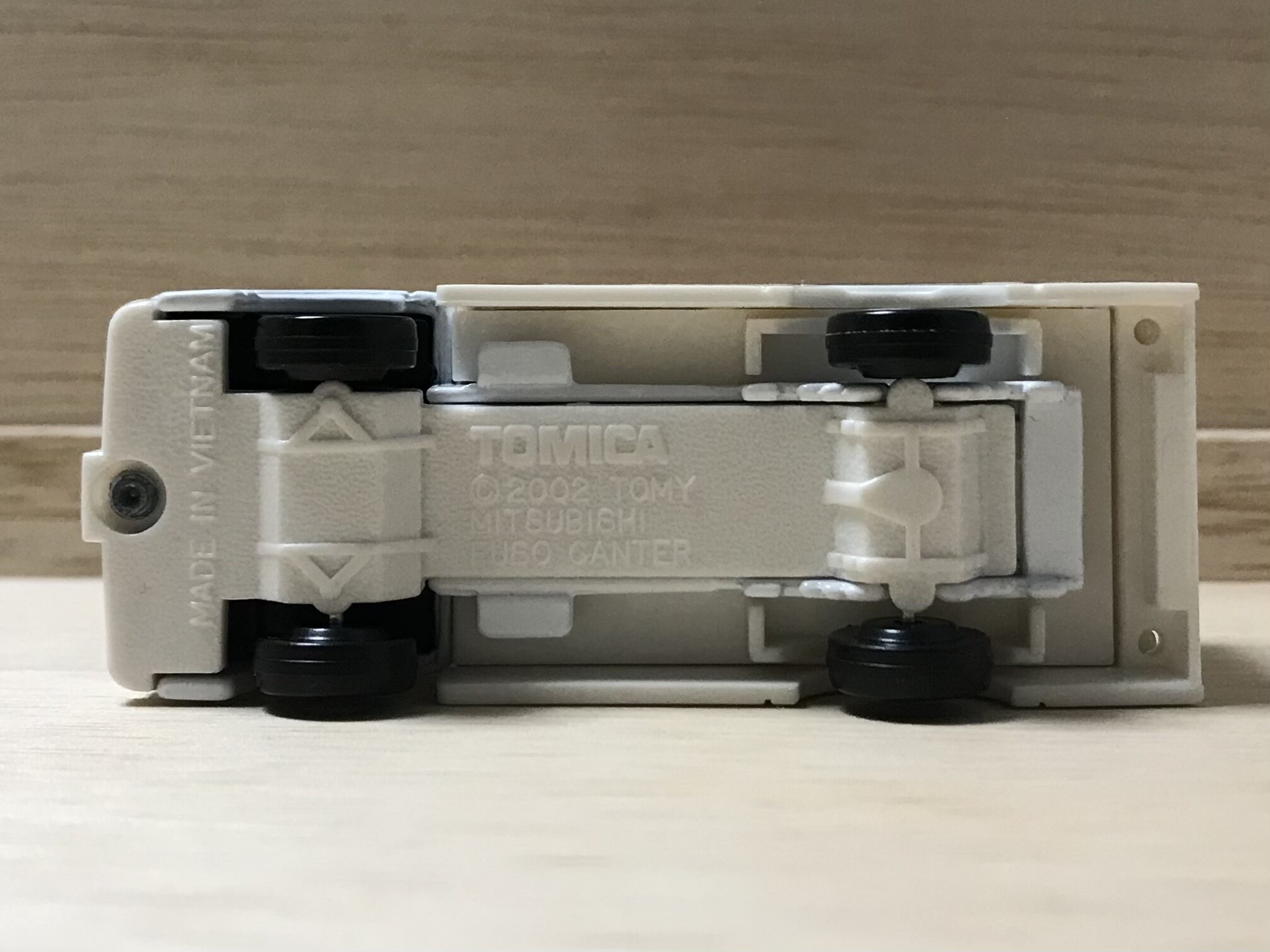 ベースとなったトラックは三菱ふそうキャンター。小型トラックです。赤い三菱のスリーダイヤエンブレムが目立ちますね。