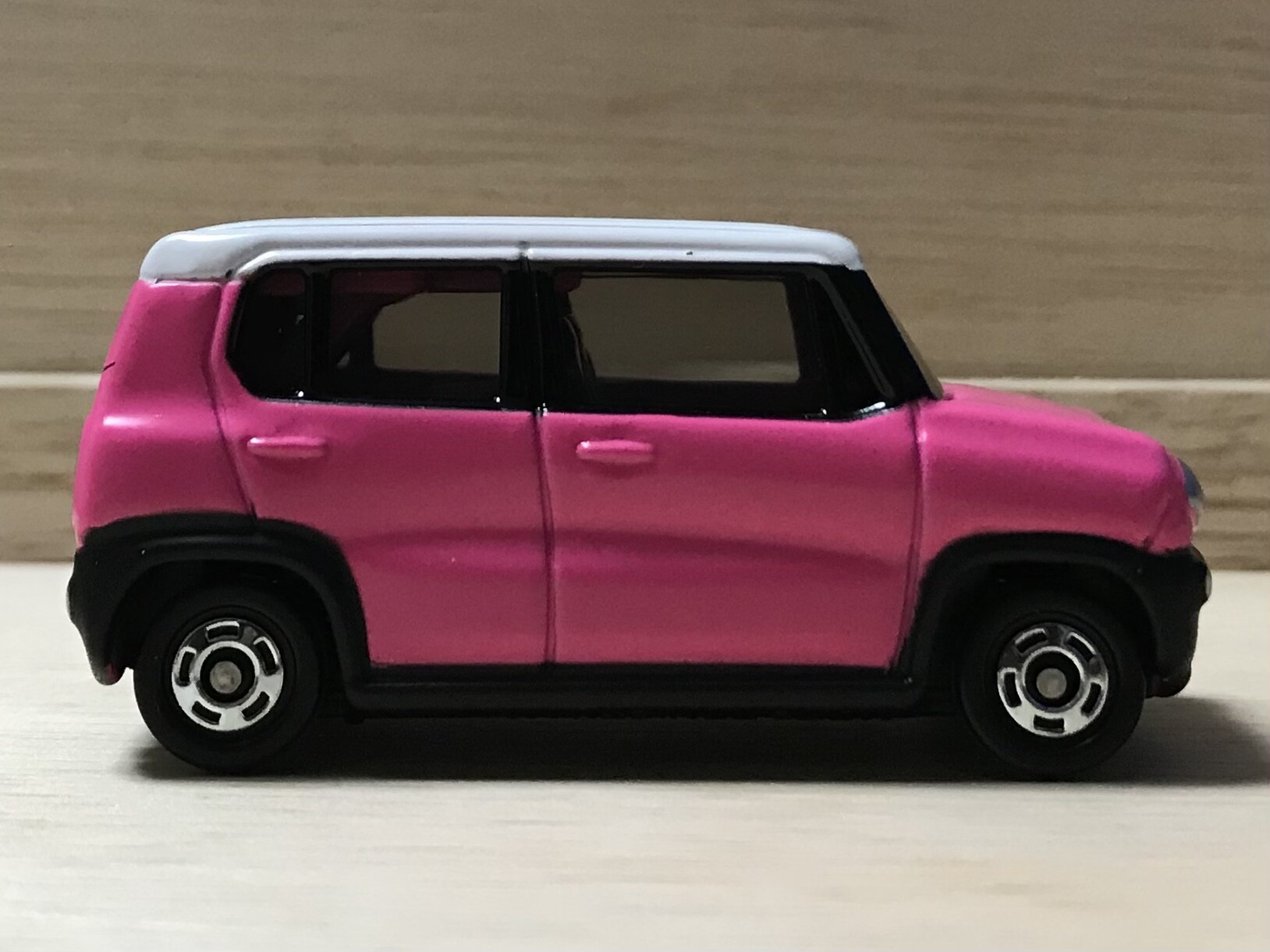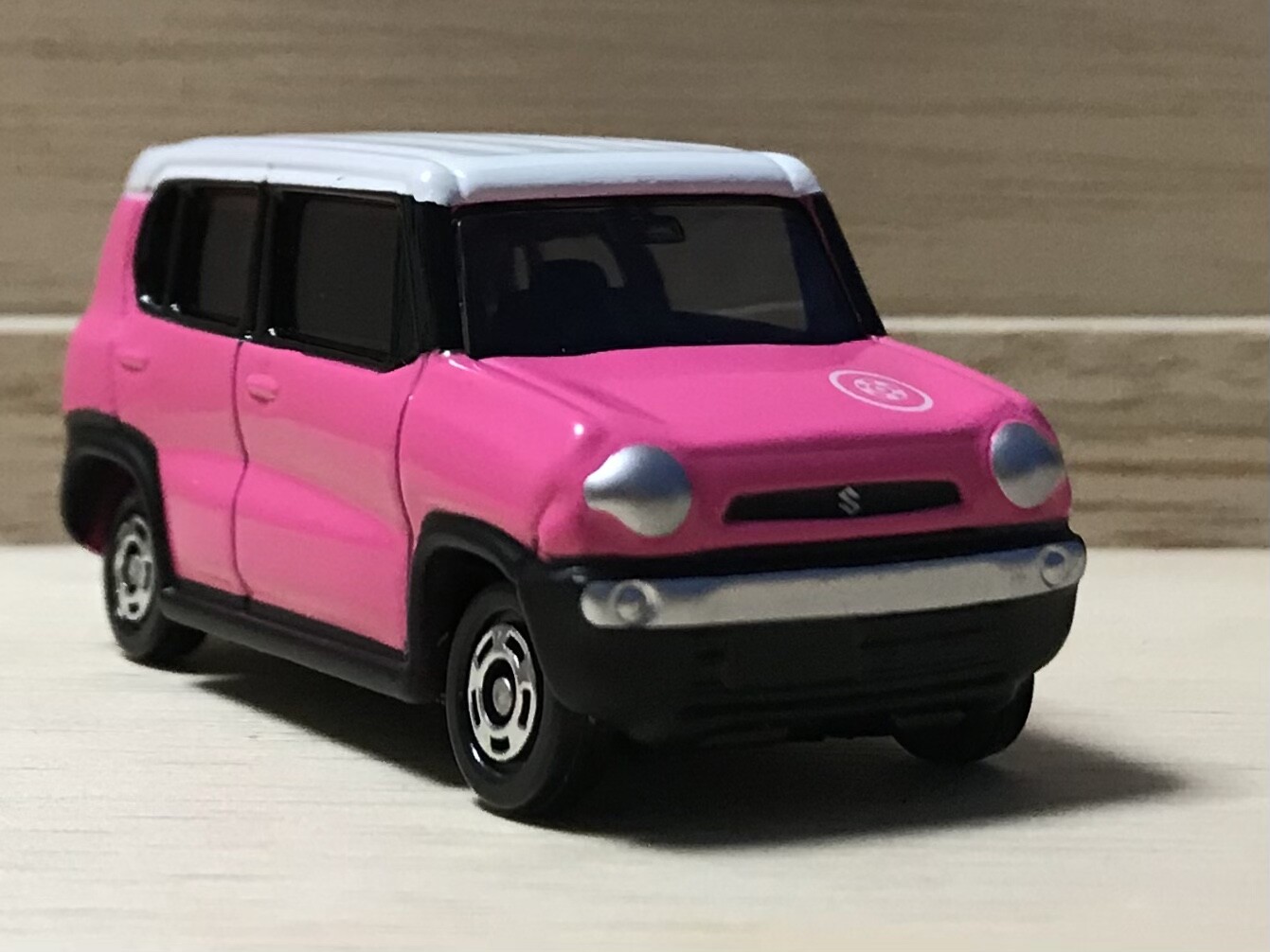 スズキの遊べる軽「ハスラー」がかわいさ狙いのピンク×ホワイトになった仕様。のちに開催された東京モーターショー2015の開催記念トミカでもこの色のハスラーが発売されました。余程人気だったのでしょうか。