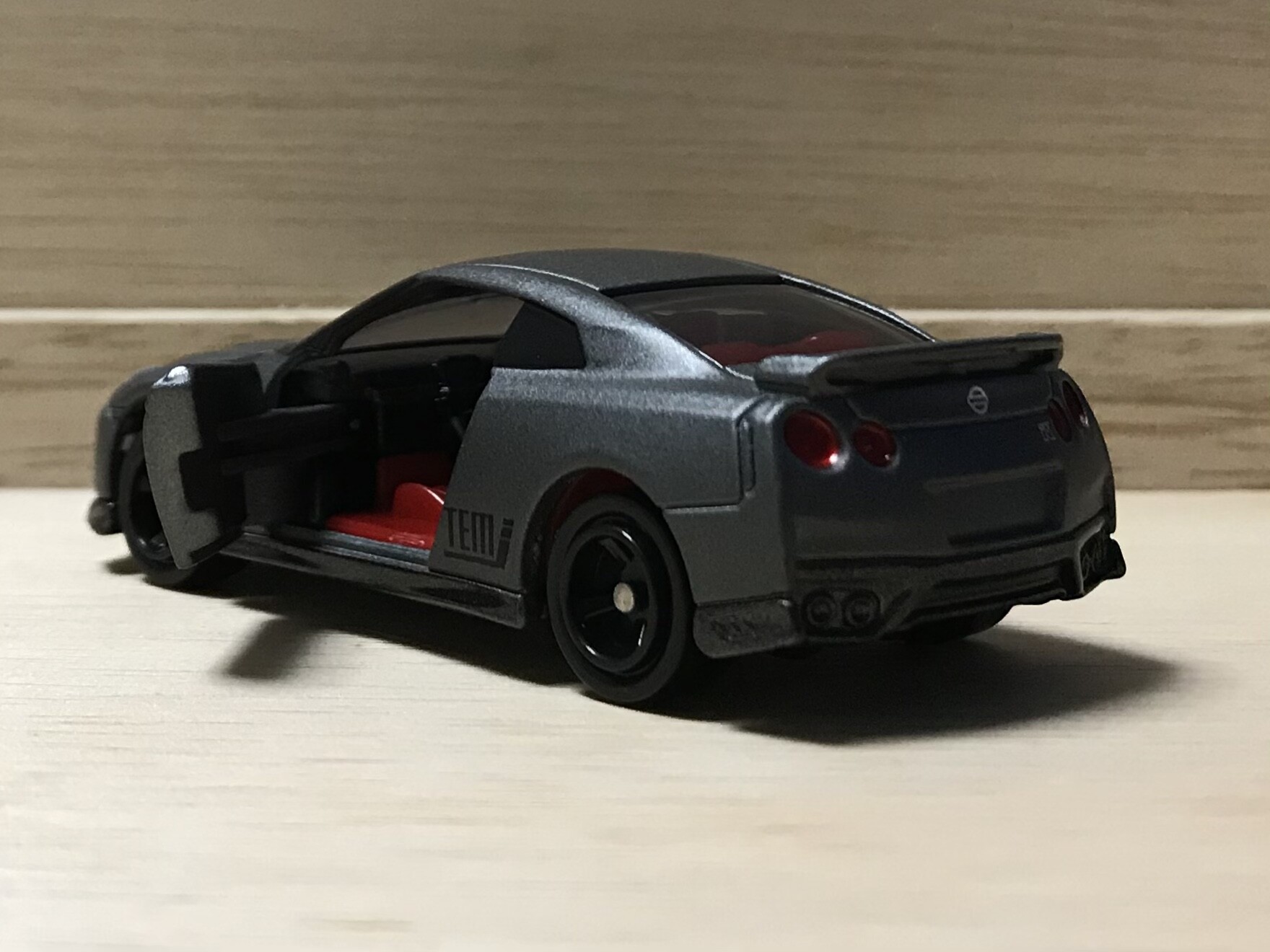 サイドはトミカイベントモデルの文字ではなく、トミカイベントモデルを意味する「TEM」の3文字になっています。スポーティーでパーツメーカーのような感じになっていて、違和感のなく溶け込んでいます。