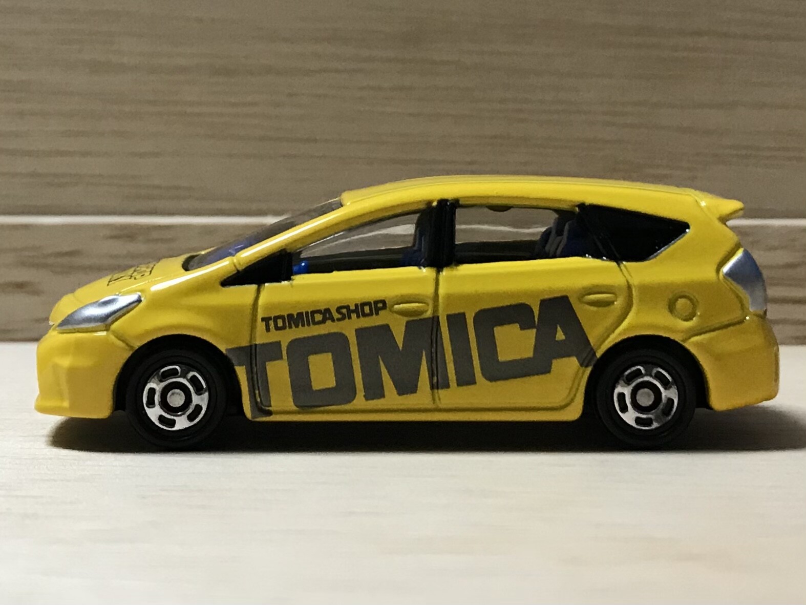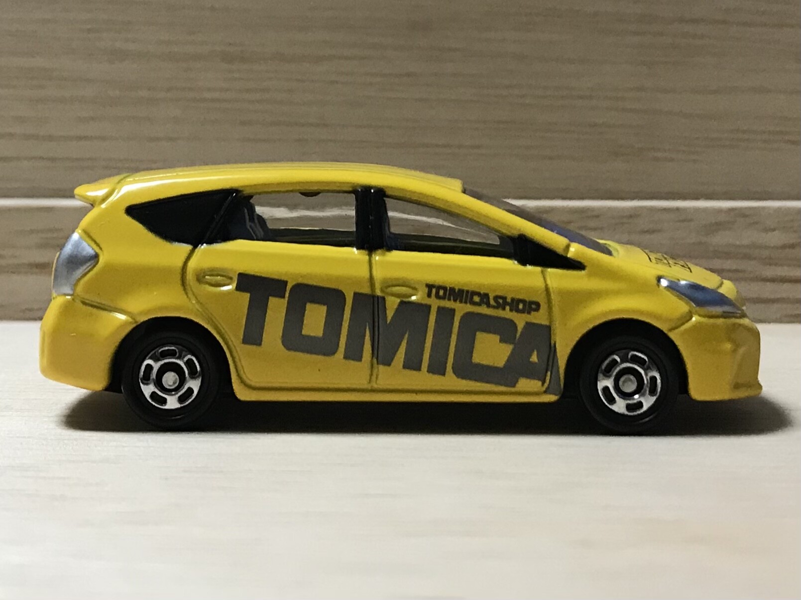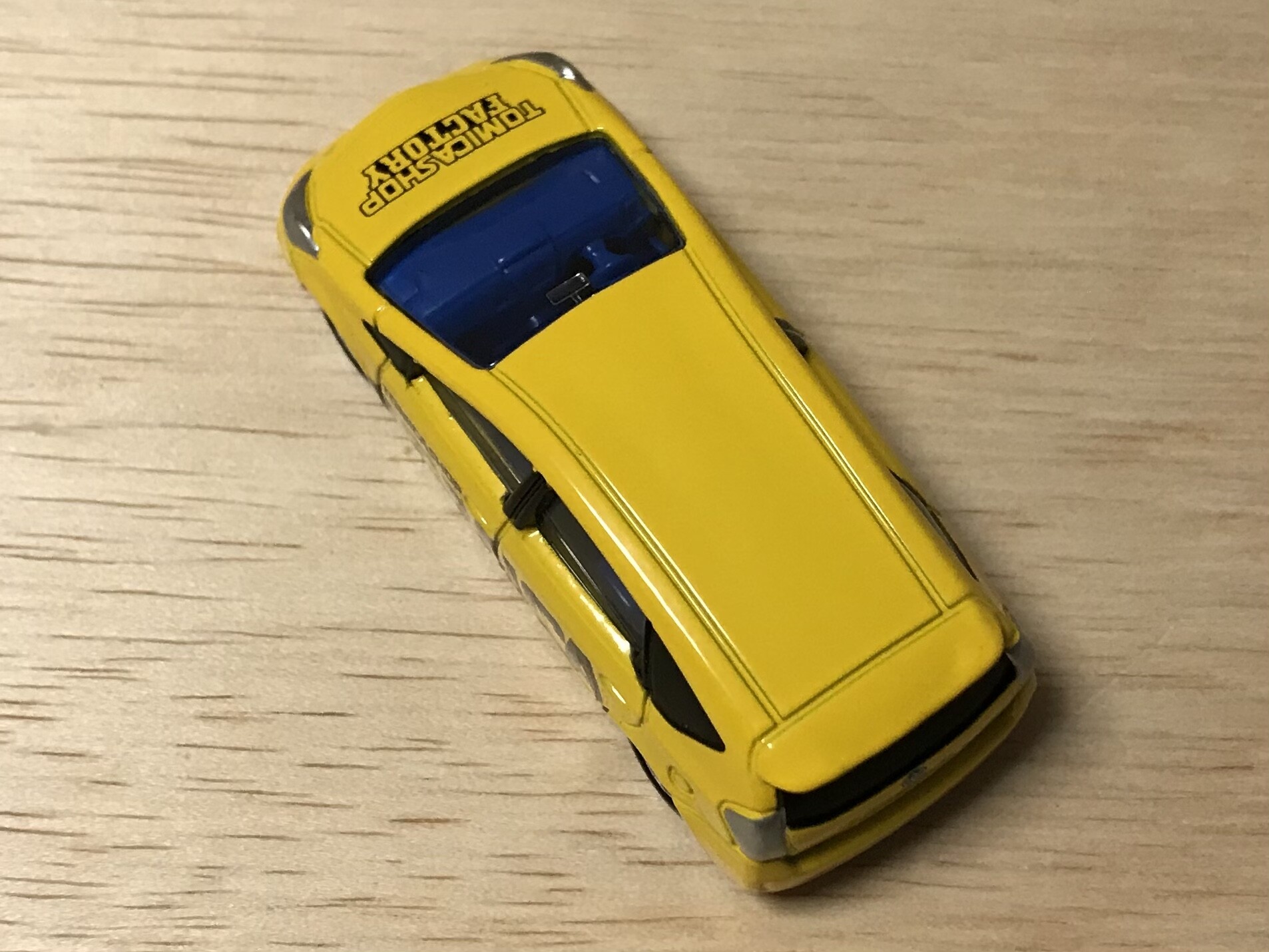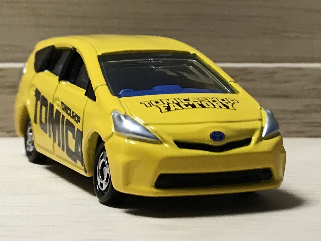 トミカショップにあるトミカ組み立て工場で展開されていたプリウスα。ボンネットにはTOMICA SHOP FACTRYの文字。トミカショップの組み立て工場であることを強調しています。