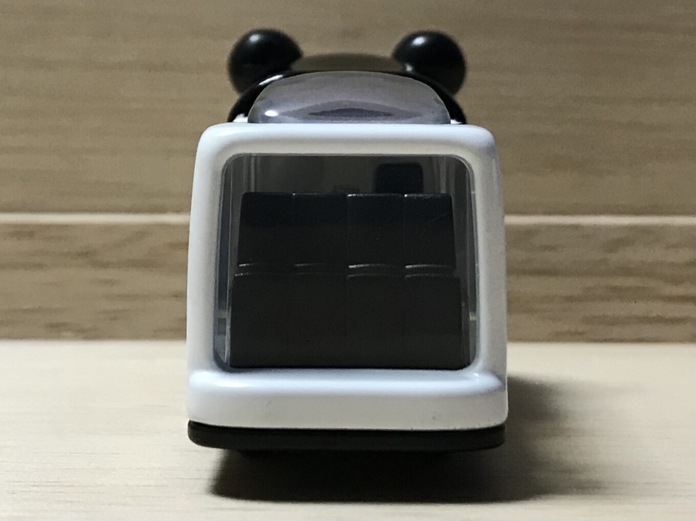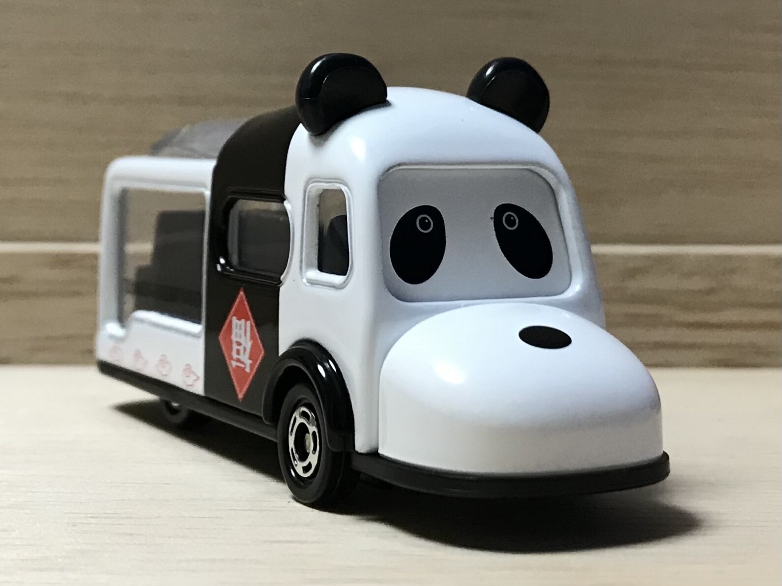 前面のウィンドウは前面が覆われていて、パンダの目の部分になっています。