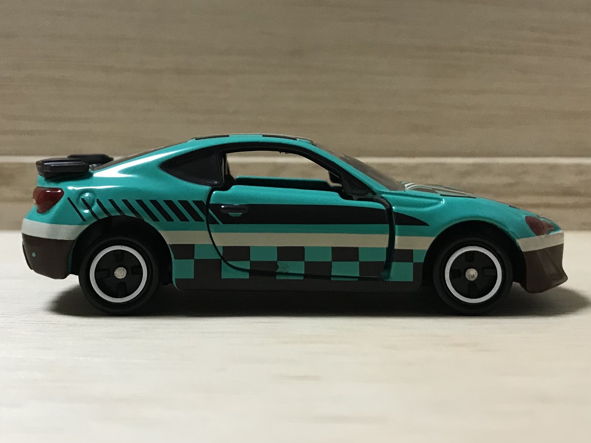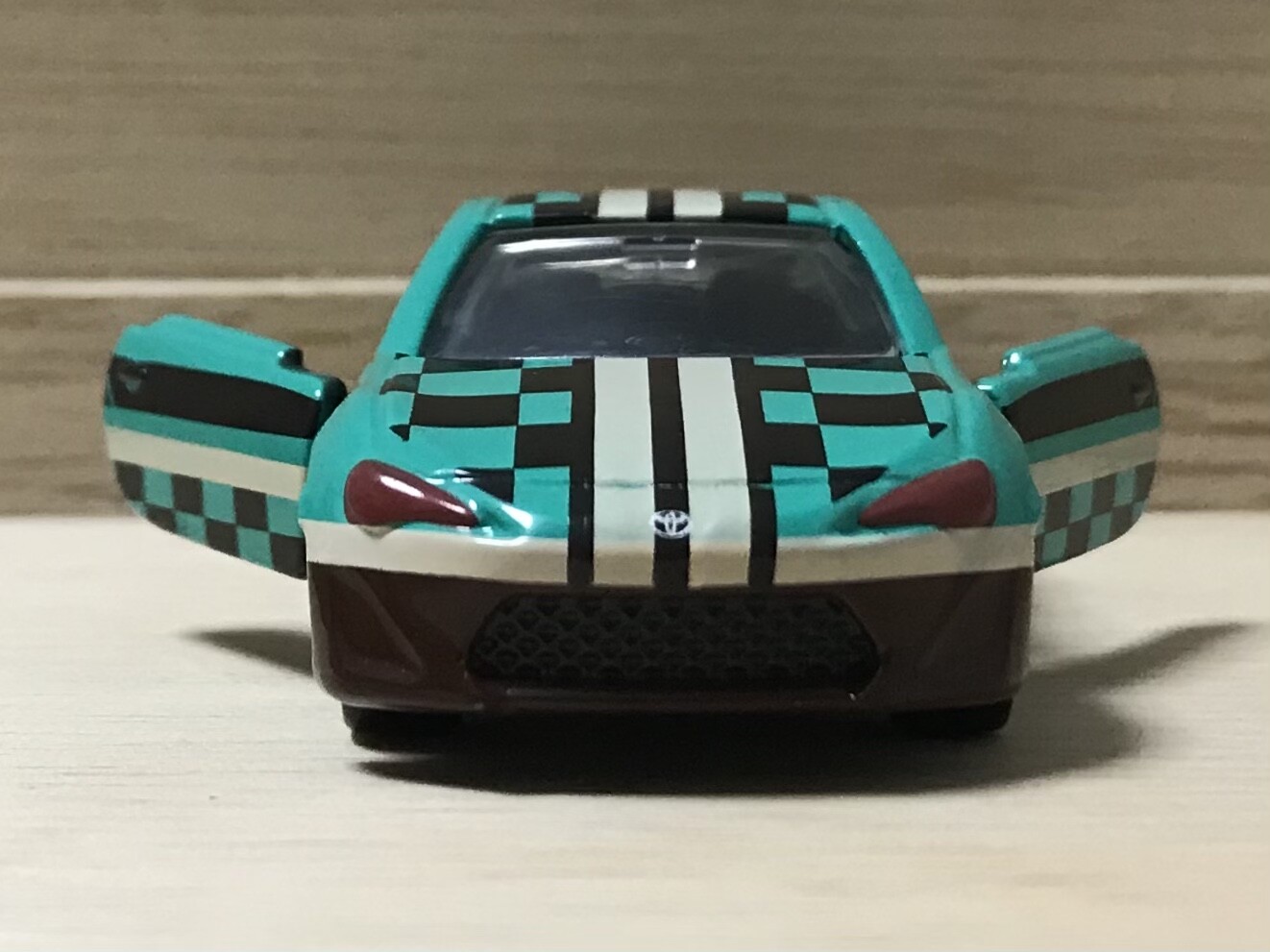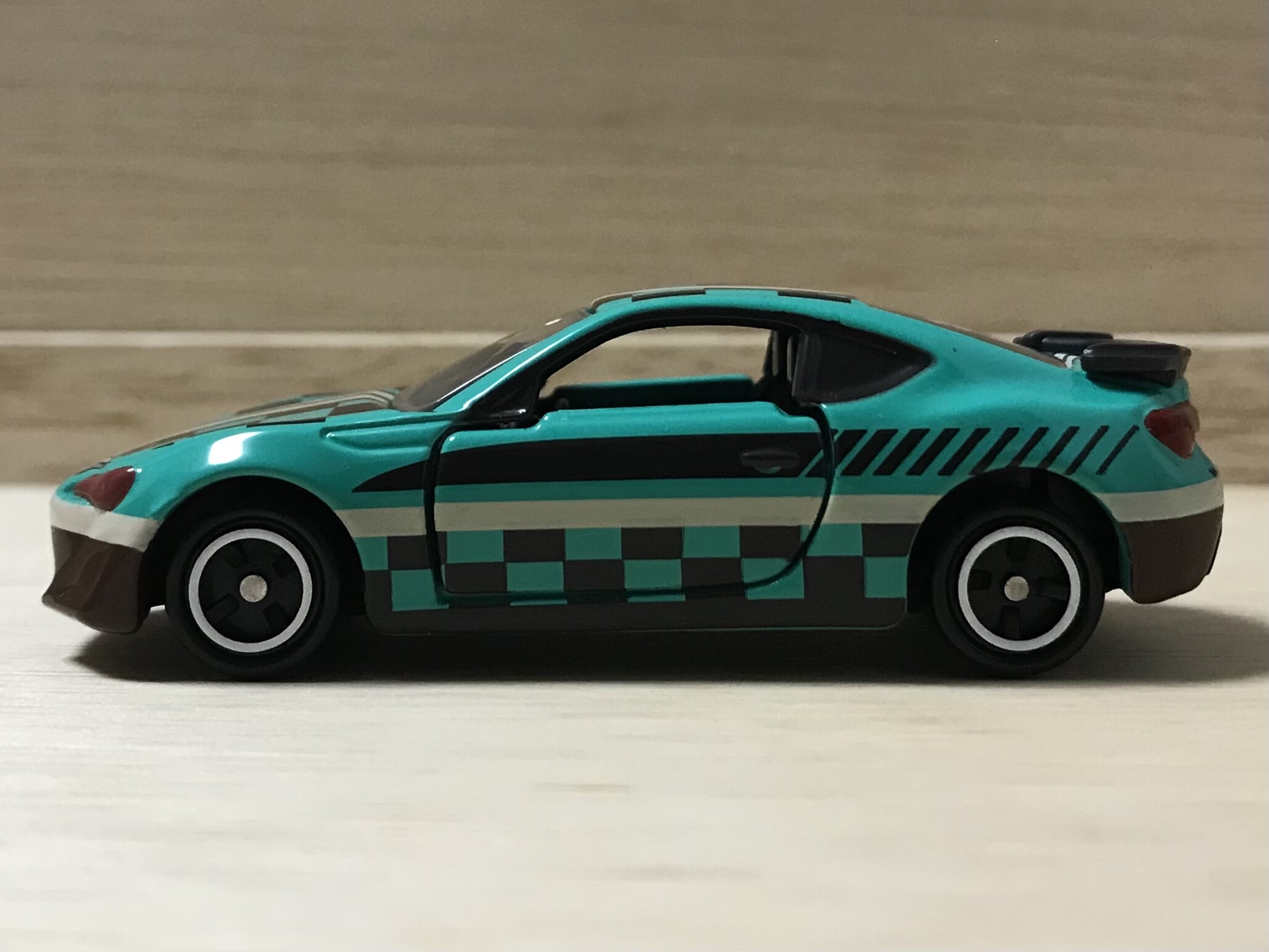 社会現象となれば、トミカにも新シリーズとして登場するのです。トヨタ86をベースに炭治郎カスタム。このカラーは鬼滅のカラーとよく言われていますよね。