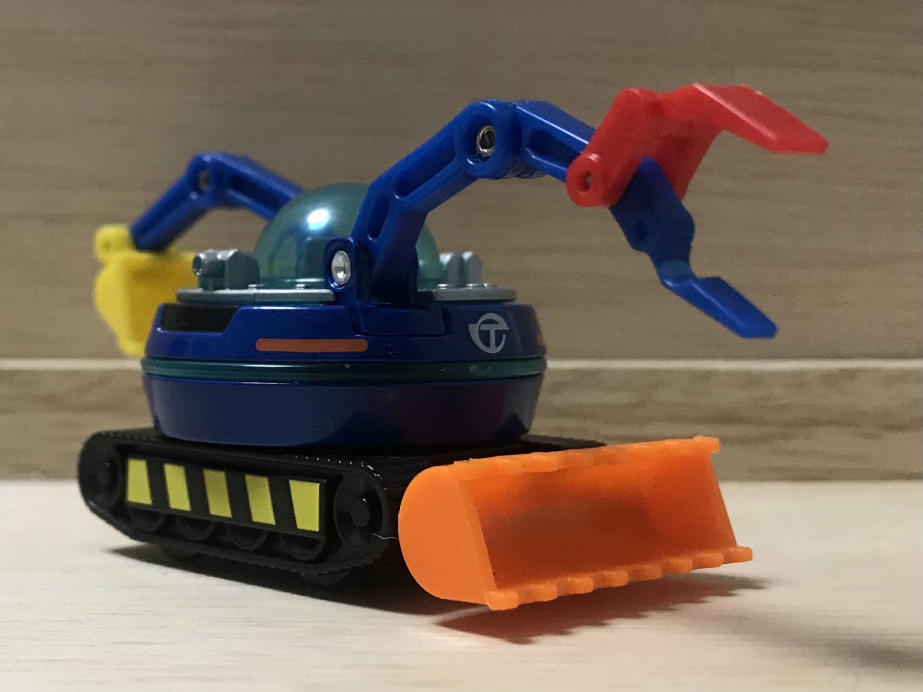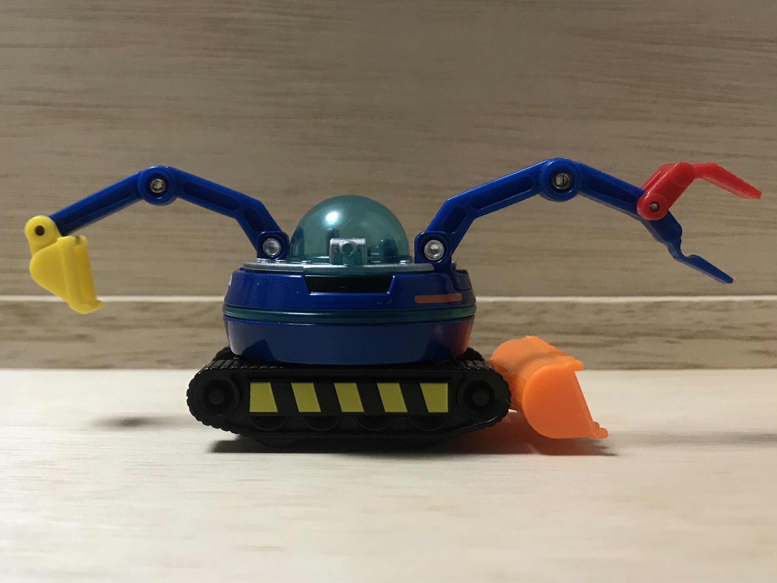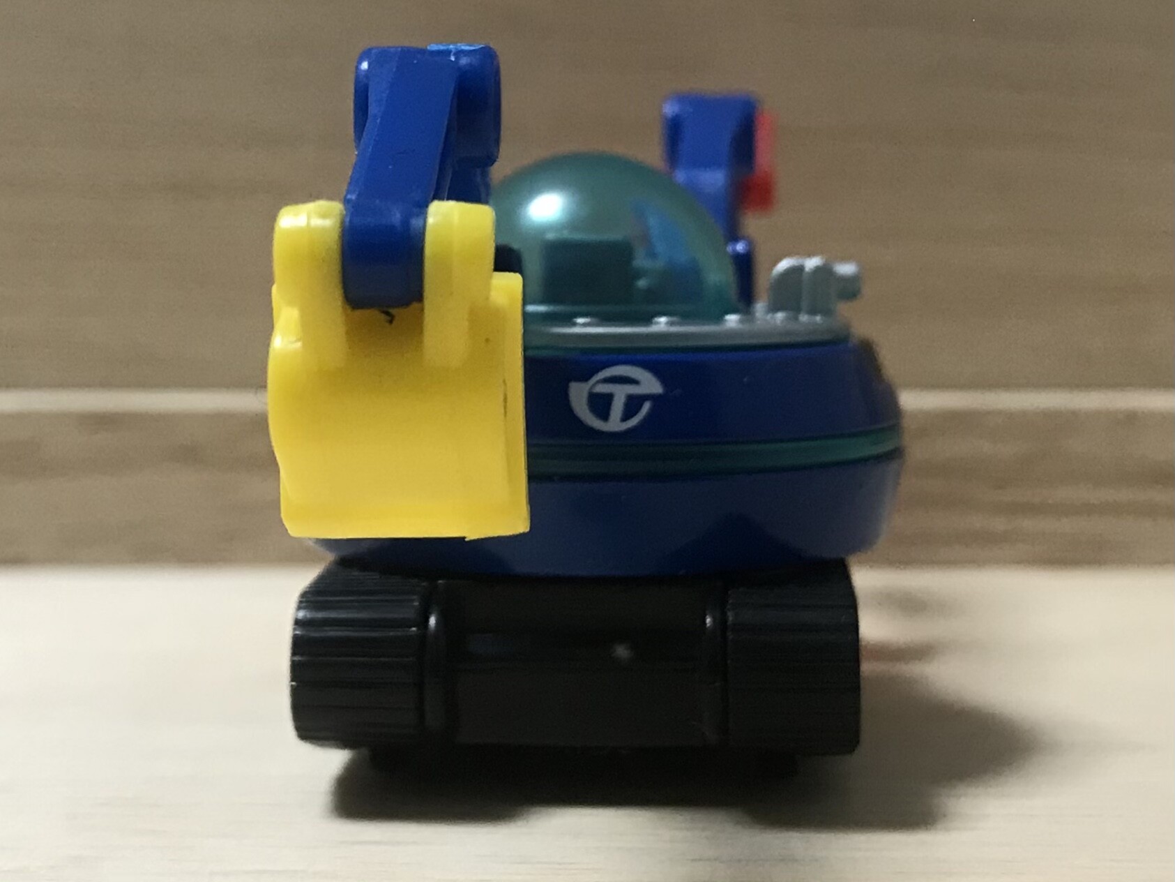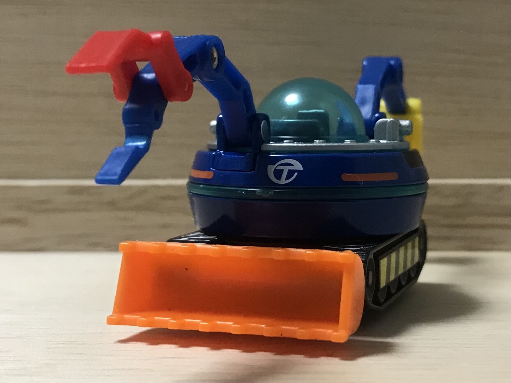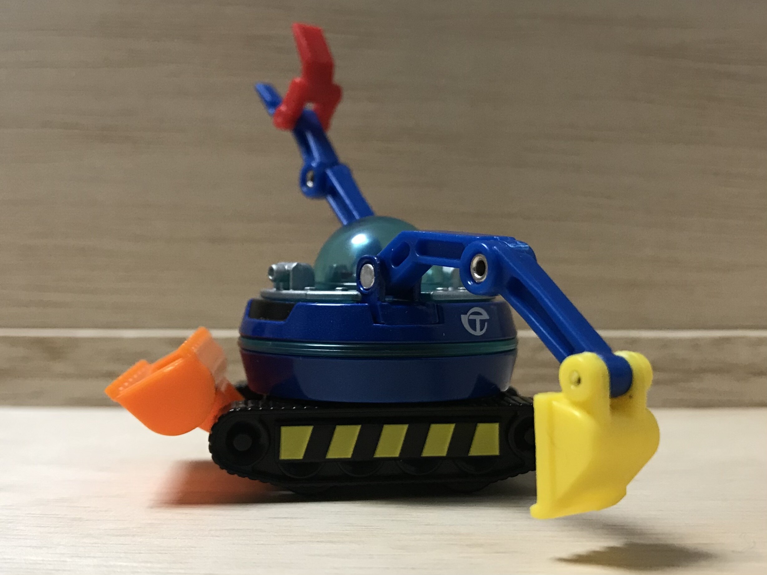 下から見ると、クローラー擬きの車輪が見えますね。このトミカは残念ながらクローラー式ではありません。