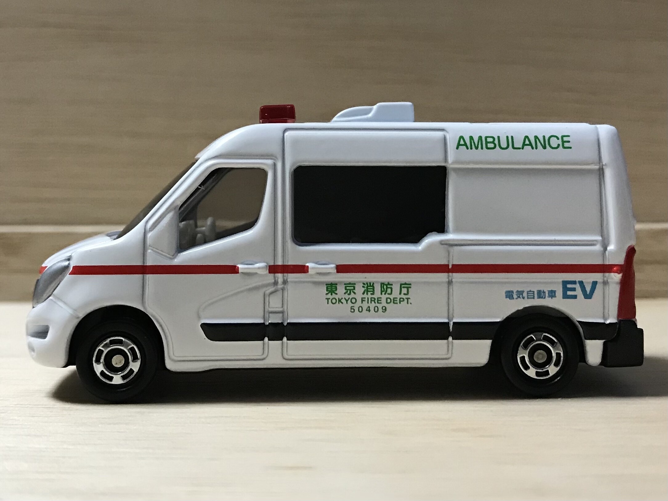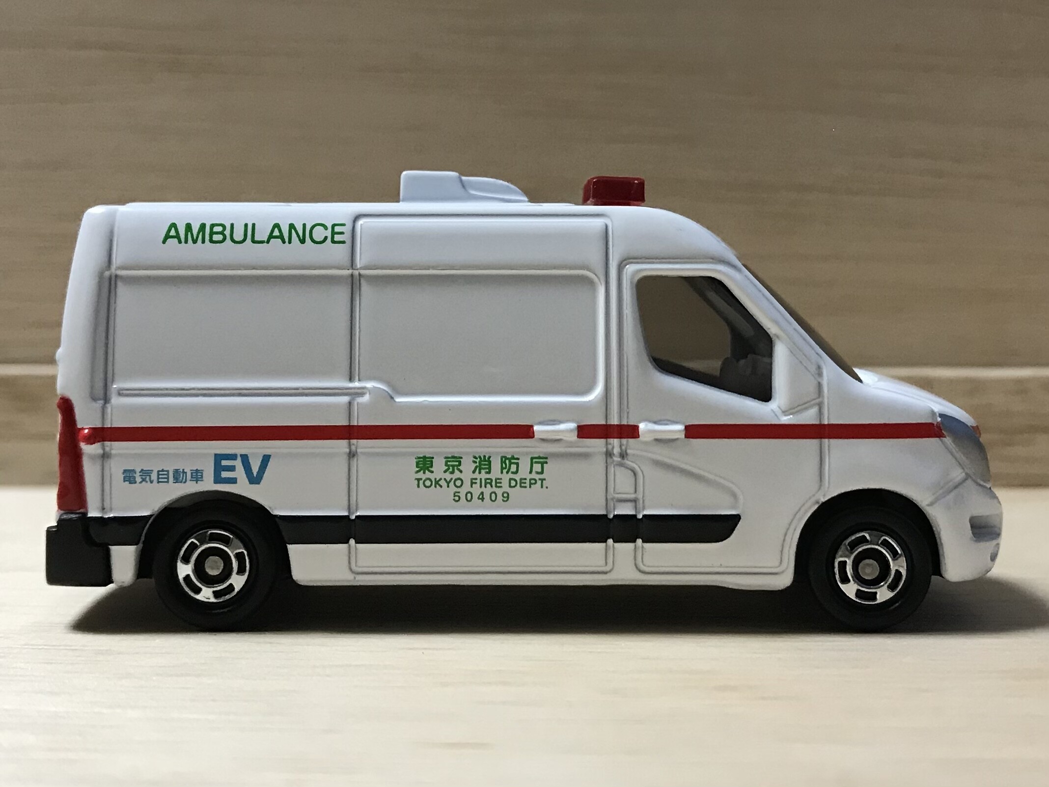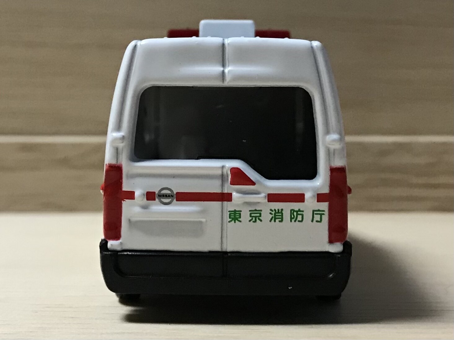 救急車にしては珍しく、東京消防庁の表記や車番まで再現。東京消防庁のルーフに「AMBULANCE」文字が入って以降の東京消防庁救急車のトミカ化は初。