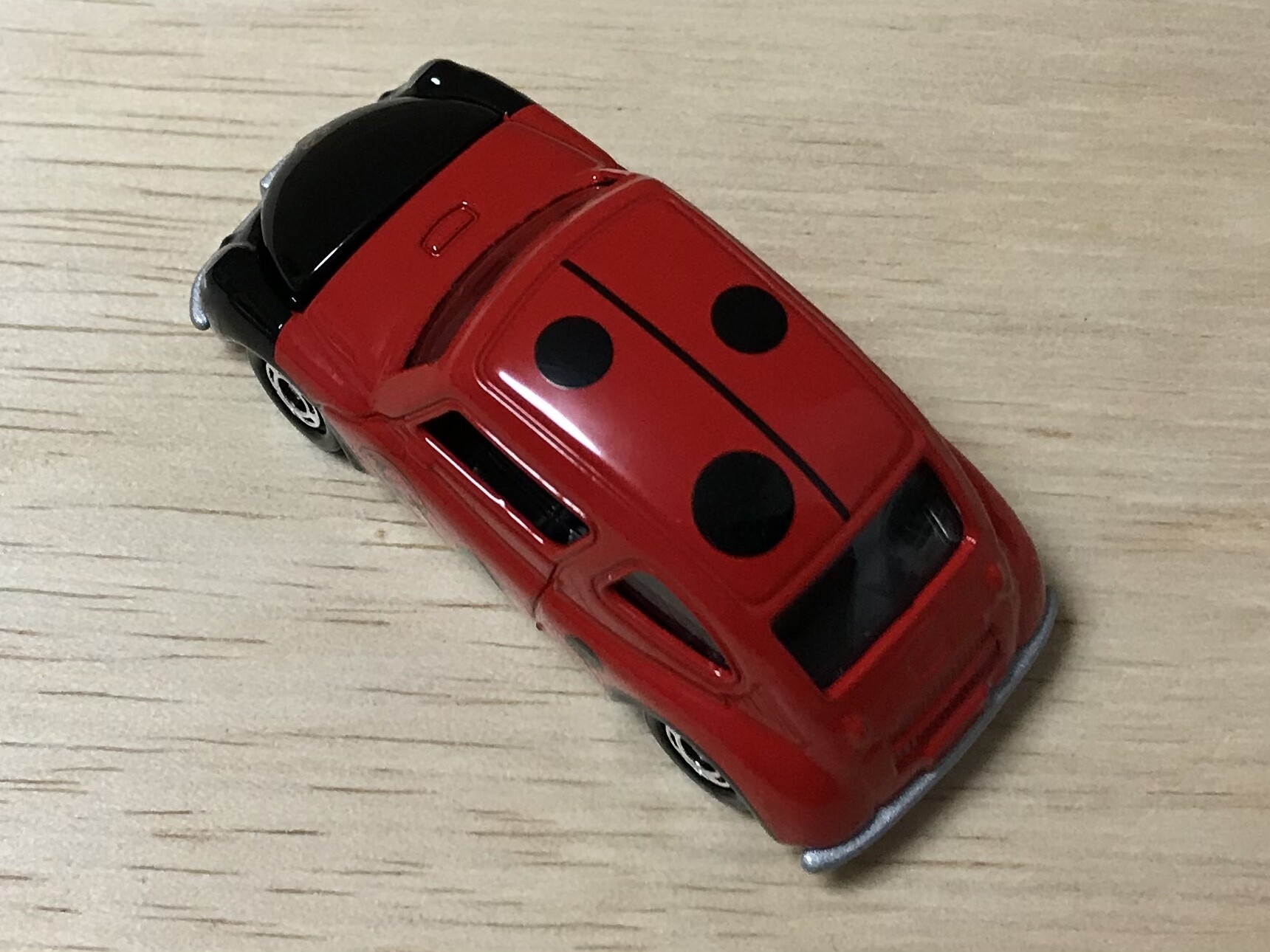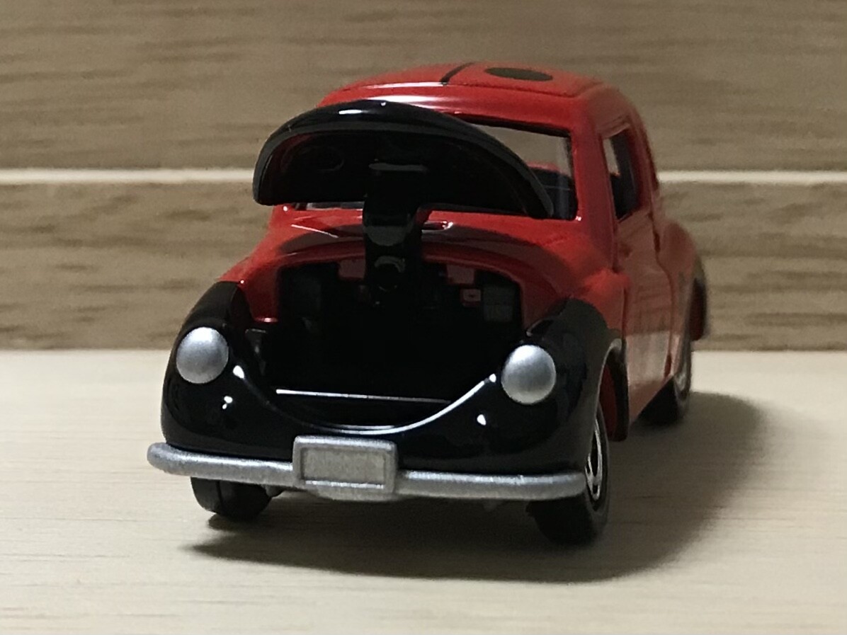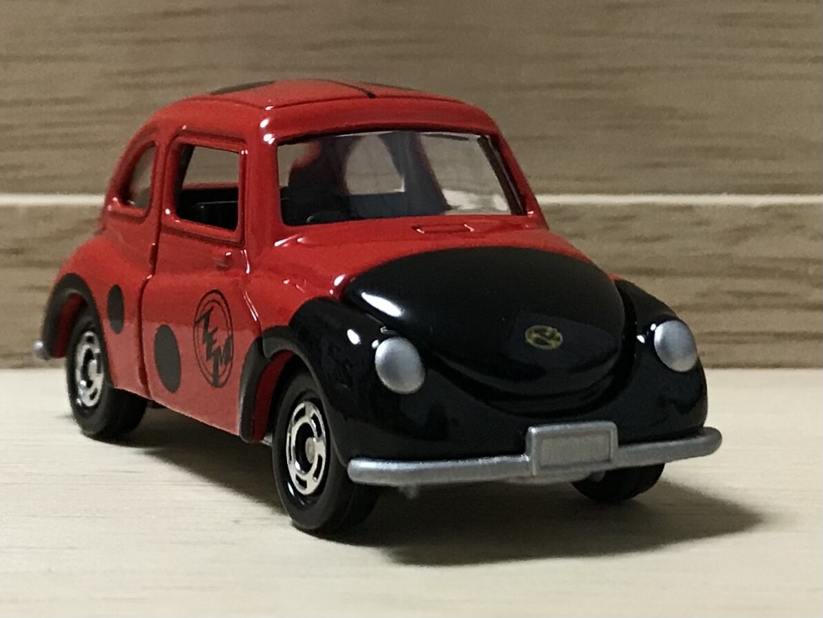 てんとう虫という愛称から、トミカではてんとう虫(ナナホシテントウ)カラーに。ドイツのフォルクスワーゲン・タイプ1にはカブトムシという愛称があったので、昔の車は虫っぽさが強かったのかもしれません。