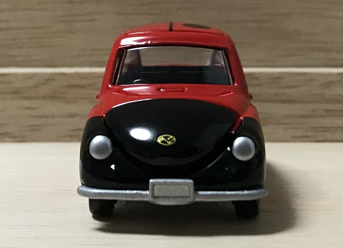 トミカでは昔、「富士重工 スバル360」として販売されていました。2009年に金型がリニューアルされ、今回のベースはもちろん、2009年のリニューアルもの。金のスバルのエンブレムが眩しいですね。