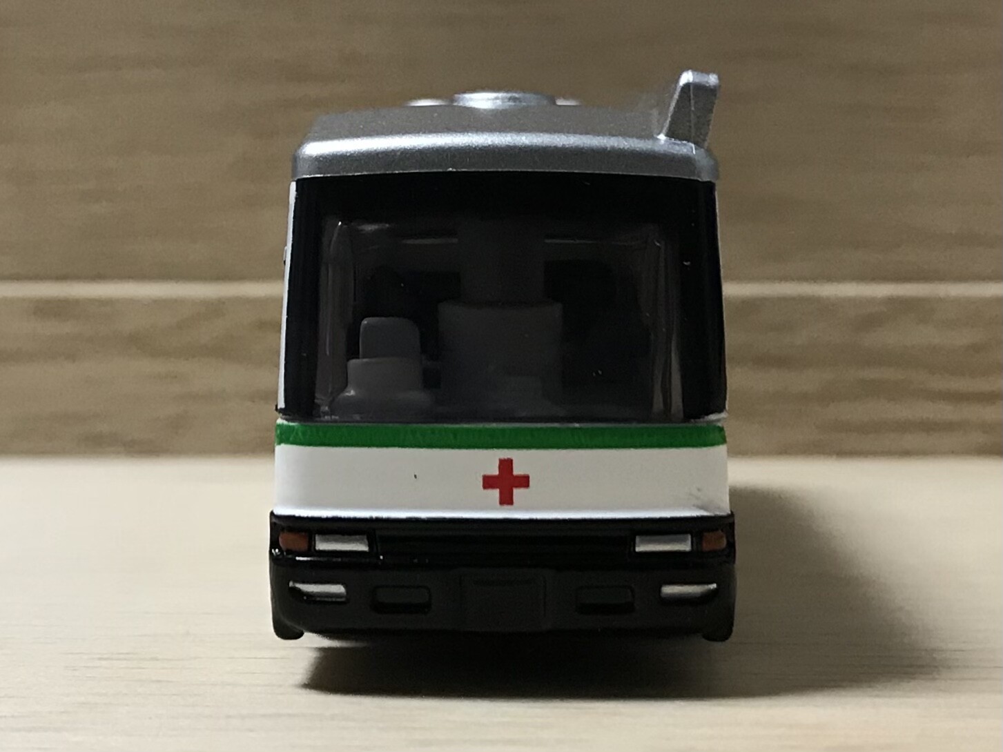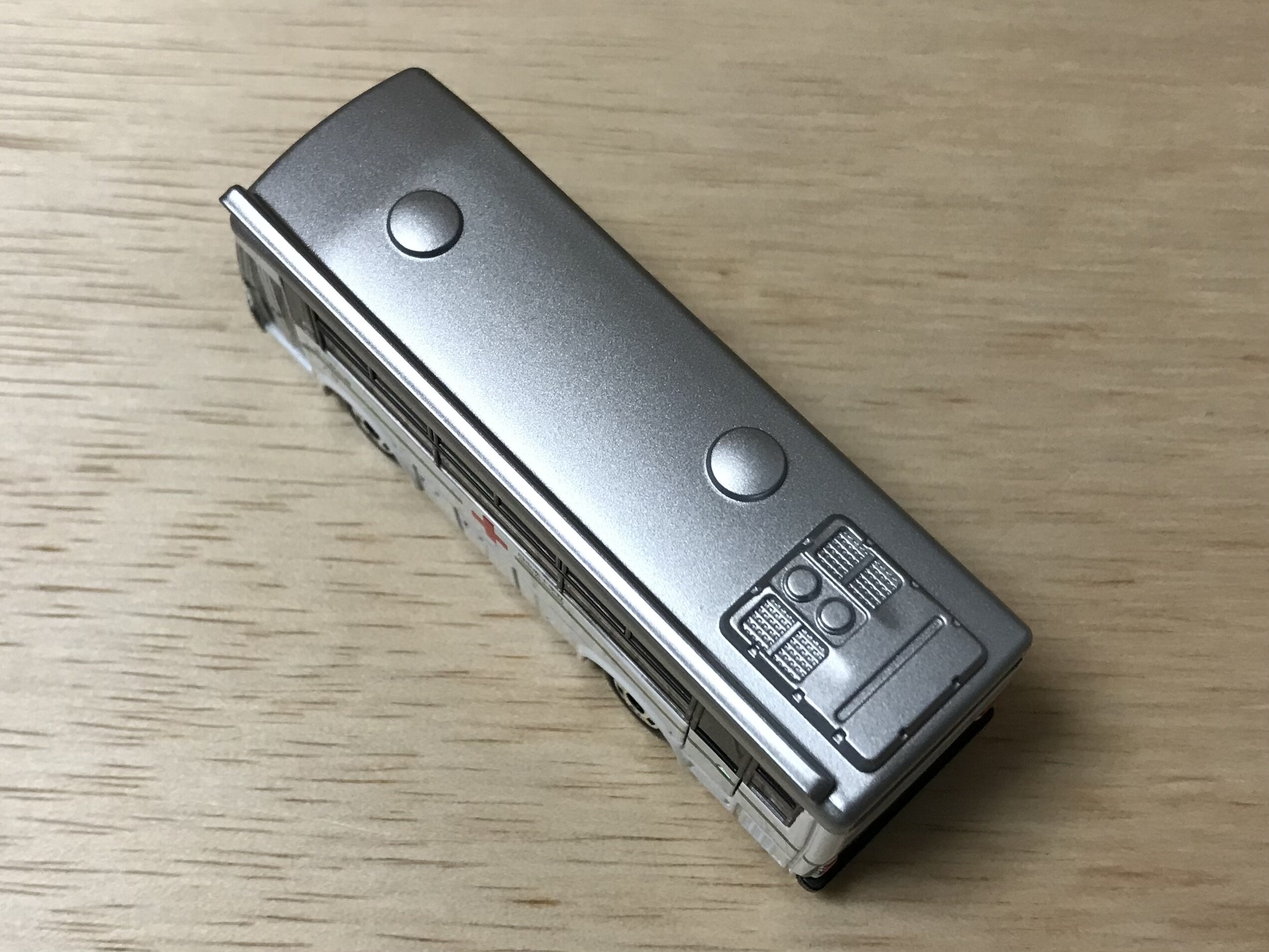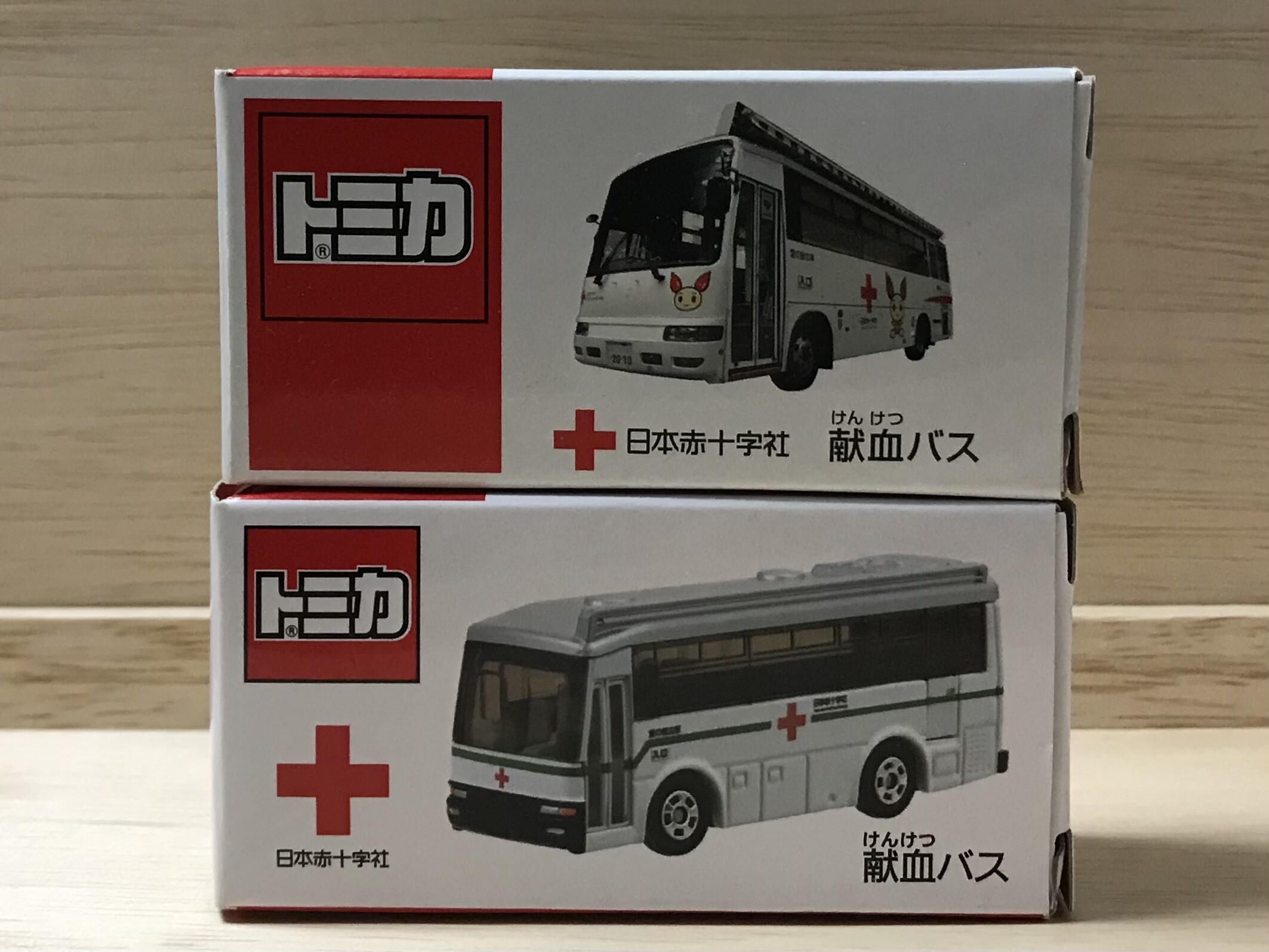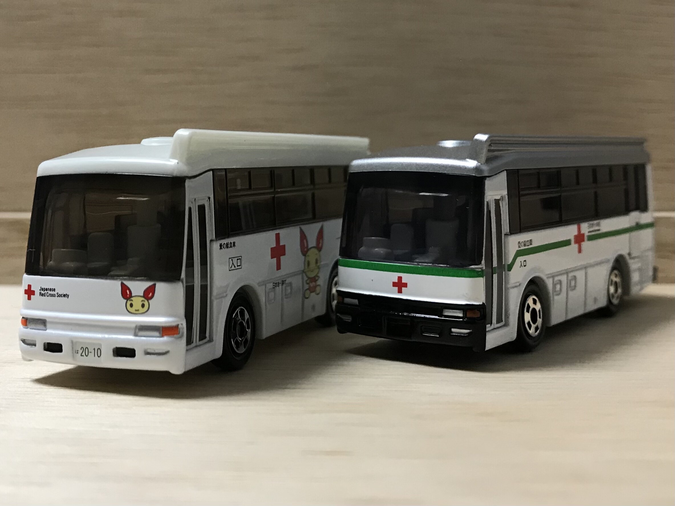 塗装は新しくなった新モデルで、献血バスの旧塗装を再現。新しいのに古いという珍現象です。実車が存在したかは不明。バンパーが黒でないモデルなら兵庫県にいたことが確認されています。