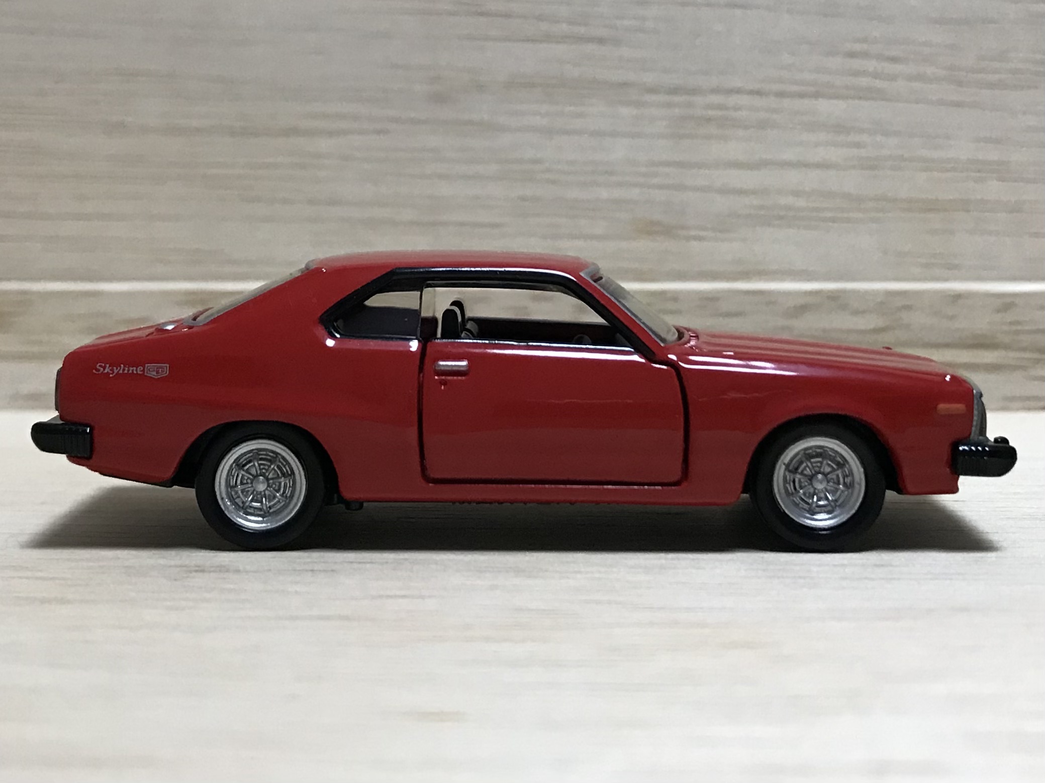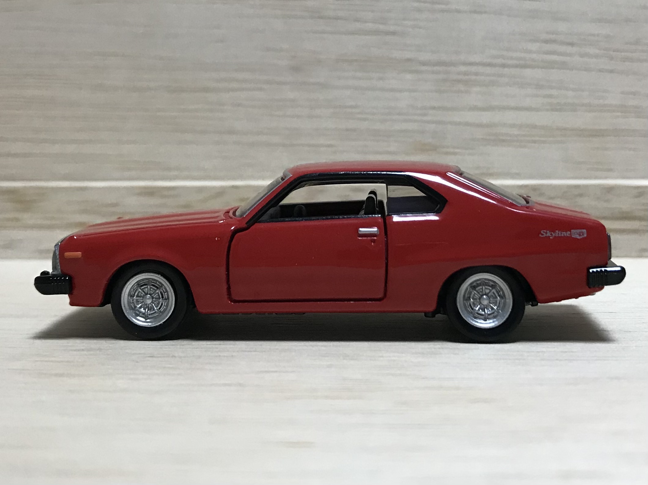 5代目スカイライン、「ジャパン」の愛称で親しまれている1台です。トミカプレミアムシリーズで日産スカイラインはこれで何台目でしょうか。ハコスカもあったり、GT-Rシリーズもあったり。トミカプレミアムは困ったらスカイライン頼みなのでしょうね。