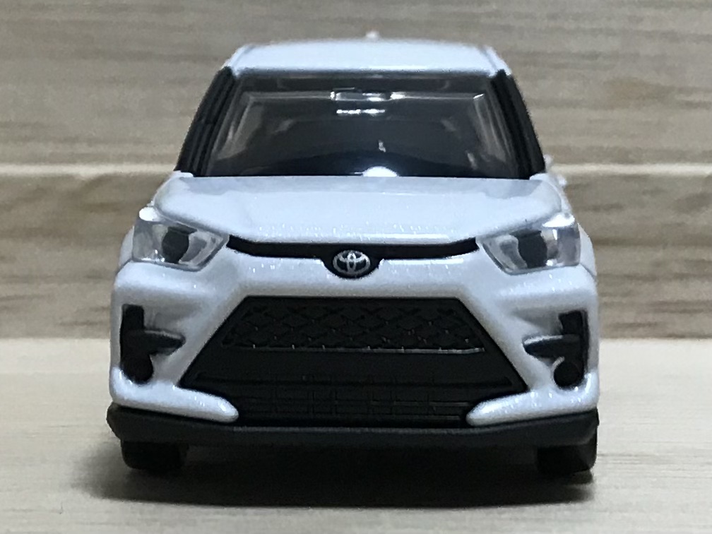 ロッキーとライズは顔はヘッドライト以外は別のもの。ライズはRAV4の小さい版と言われていたりと、トヨタのラインナップに溶け込んでいます。トミカでもヘッドライトパーツはロッキーと共通のもの。