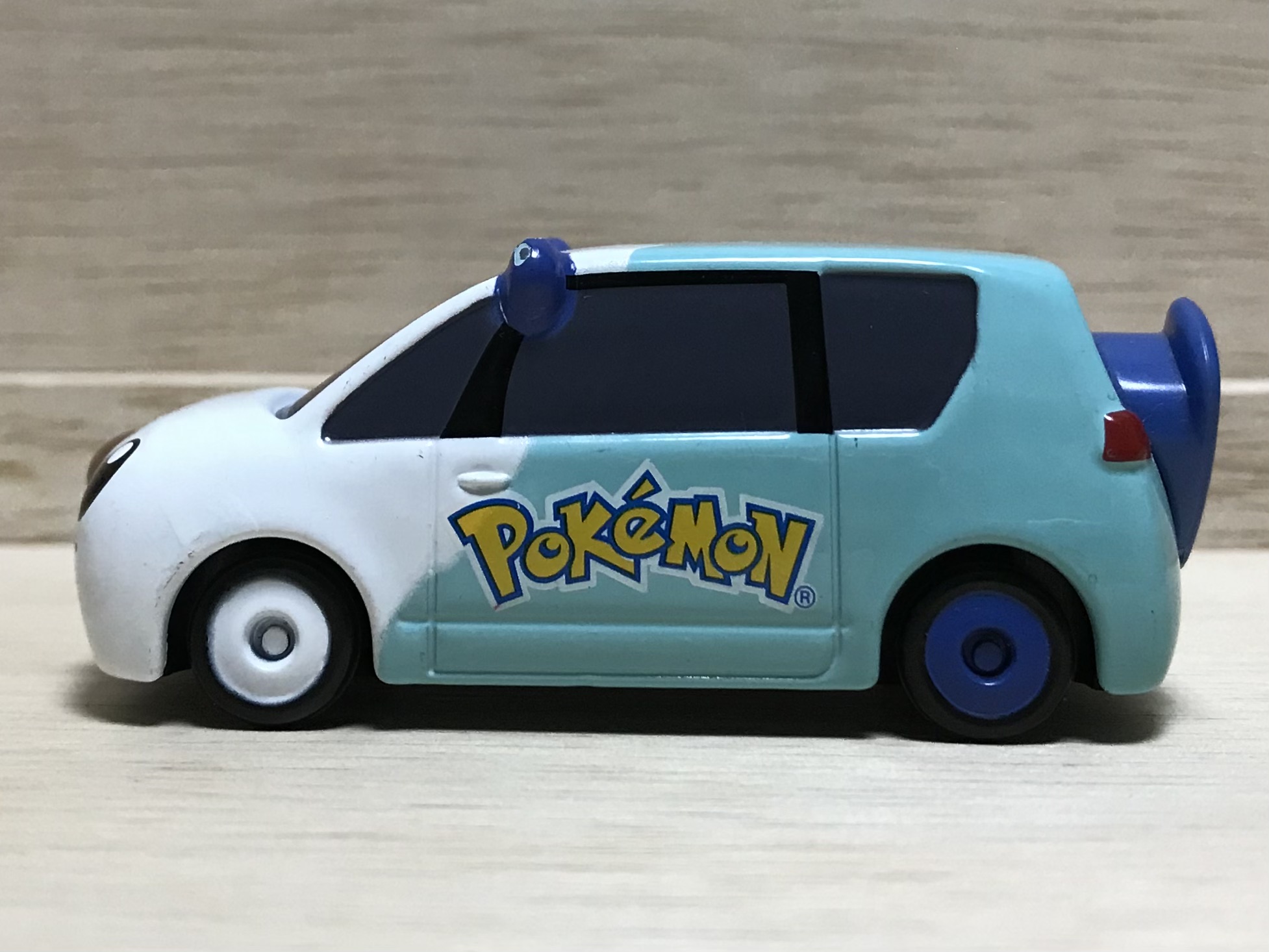 実車のベースはトヨタ自動車の初代ポルテ。トヨペット店特注やテレビ東京系で放送されていた「ポケモンスマッシュ」の番組コラボ企画のトミカとしても登場しており、ポケットモンスターの中の1つの作品のキャラクターにしては、多くのバリエーションがあります。ドリームトミカシリーズでは、ポケモンの代表キャラであるピカチュウのピカチュウカーより短命ではあったものの、前述の通りバリエーションは豊富。ドリームトミカでの登場は他のバリエーションよりも一番遅く発売となっており、ノーマル仕様が一番最後という珍現象が起きています。