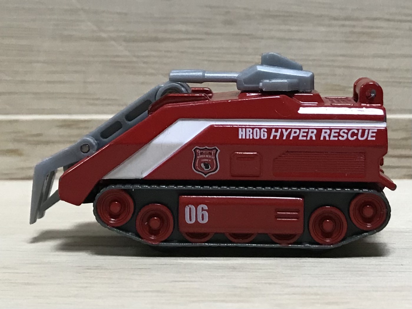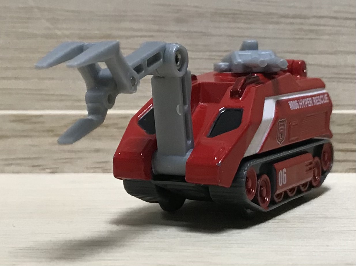 ハイパーレスキューの初期メンバーで、2期までラインナップされていた機動無人放水車。煙や有毒ガスで人が立ち入れない場所、遠隔操作で救助活動、フロントアームで障害物を除去、、、などなど、2006年のトミカとは思えないハイテクマシン。